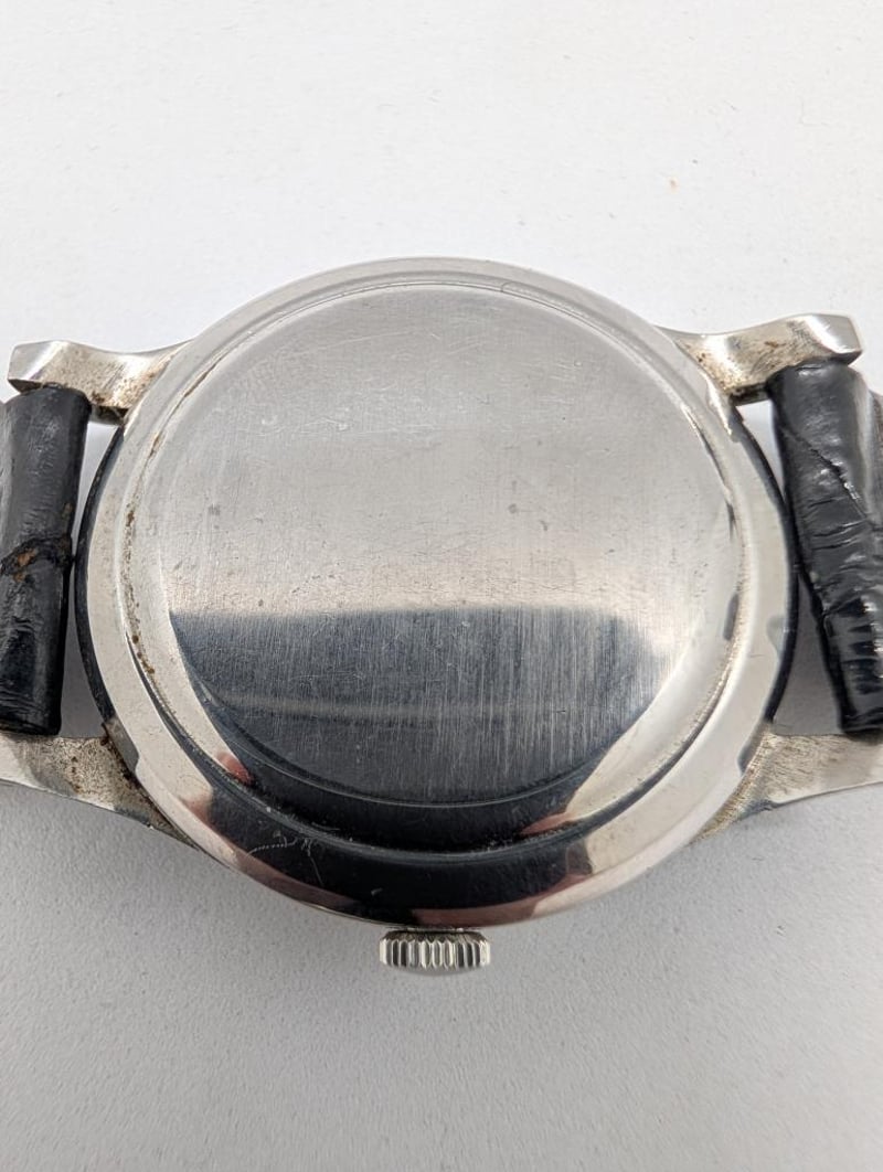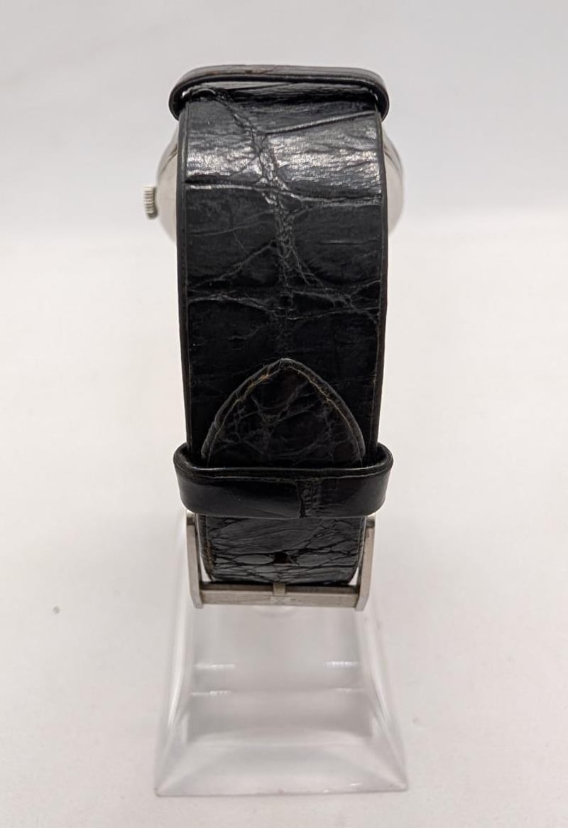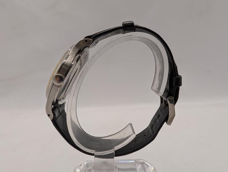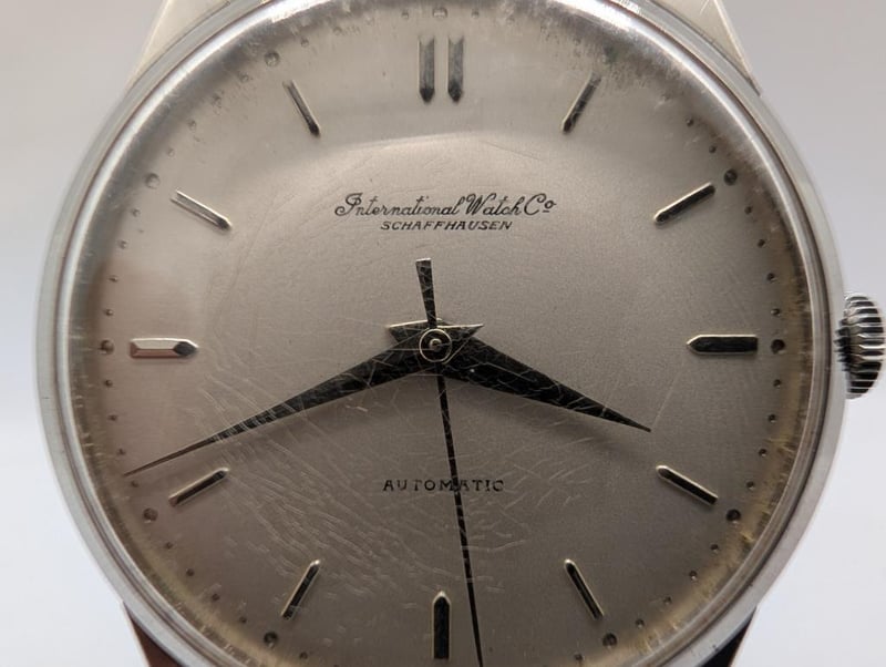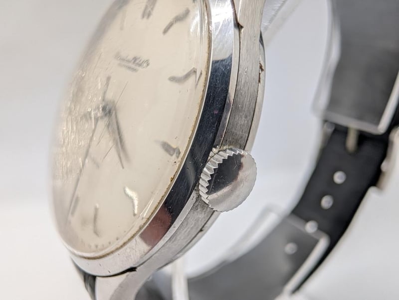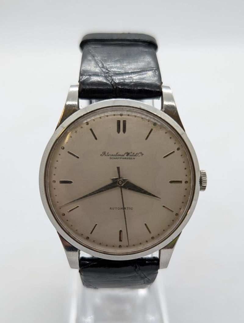 IWC SCHAFFHAUSEN OLD INTER CAL. 853 1962 PRODUCTION YEAR: 1962 DIAL: OFF-WHITE 12-HOUR CASE DESCRIPTION: SILVER STAINLESS STEEL CASE SIZE: 35MM BRACELET: BLACK LEATHER STRAP MOVEMENT: AUTOMATIC, SELF WINDING BOX: NOT INCLUDED PAPERS: NOT INCLUDED Condition: Good - Refer To Images Additional Information: Crown: 2Mm Silver Stainless Steel Glass: Acrylic Crystal Water Resistance: None Has Light Scatches On Glass ACACIA RIDGE 584442+2