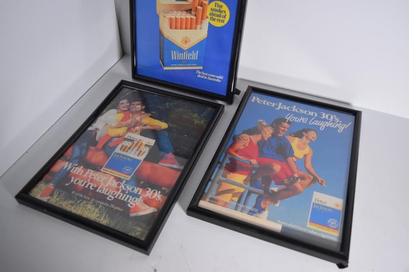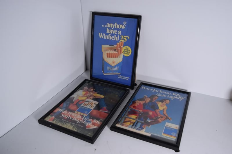 Framed "Winfield and peter jackson" cigarette advertising prints,