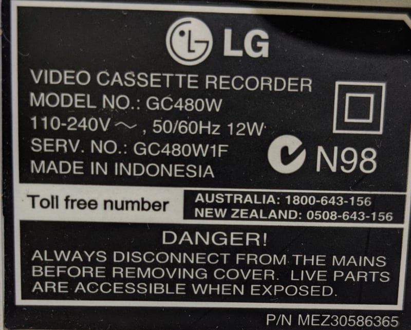 VHS player model: GC480W