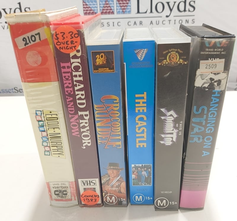 VHS tapes, comedy includes Hanging on star, Delirious, Here and now, Crocodile Dundee, The castle, this is spinal top