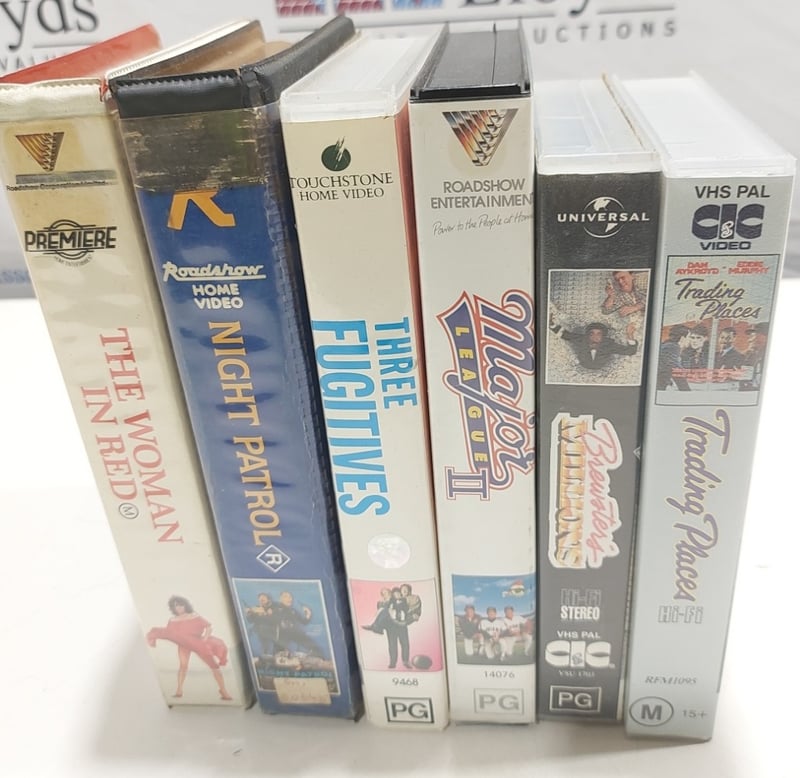 VHS Tapes, comedy includes The woman in red, Night patrol, Three fugitives, Major league 2,Brew and ters, Trading places