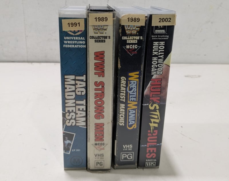 VHS, wrestling, tag team madness, WWE strong men, wrestle mania,hulk still rules and more