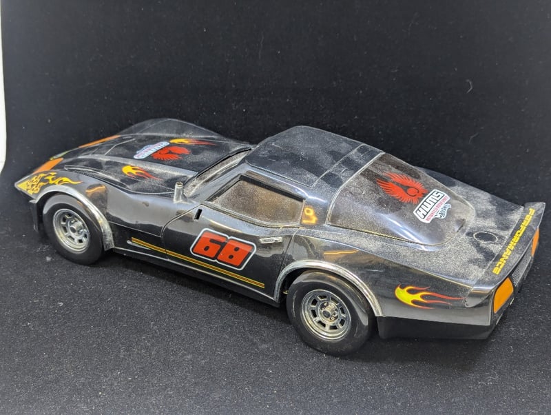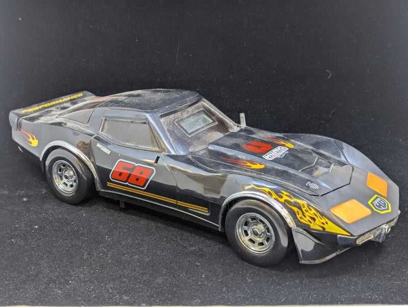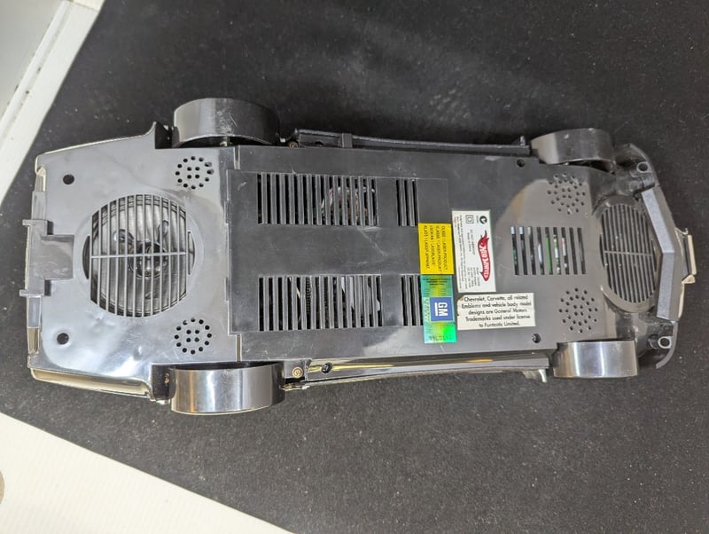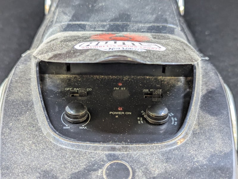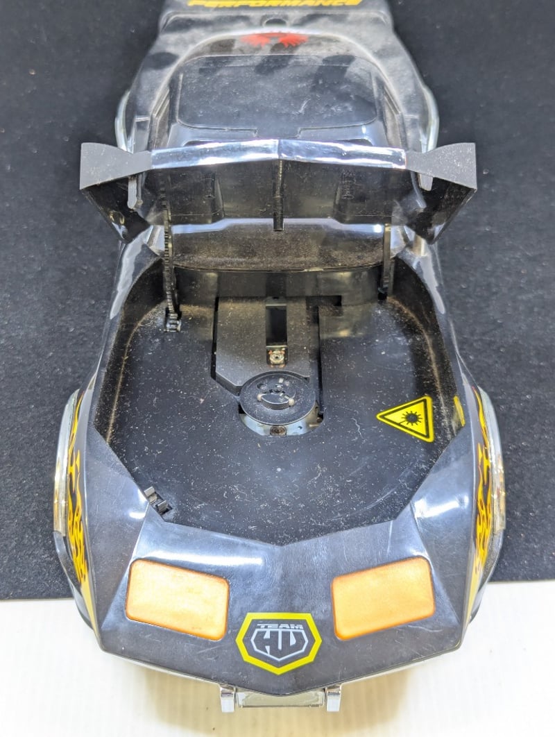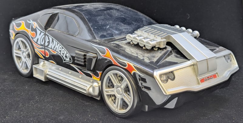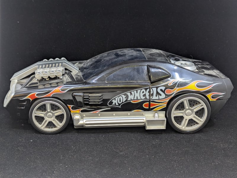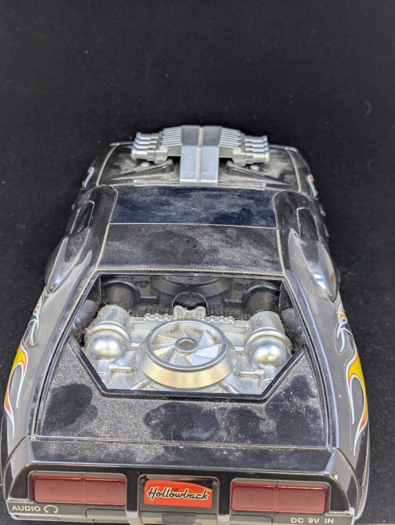 Car With 'Hwms' On Front And Back With Fire Decorations, Cd Player In Engine Compartment Of Car, Controls Under Rear Window, Item Size: 11Cm H X 17Cm W X 42Cm D