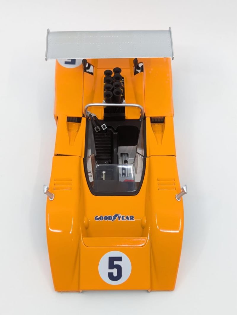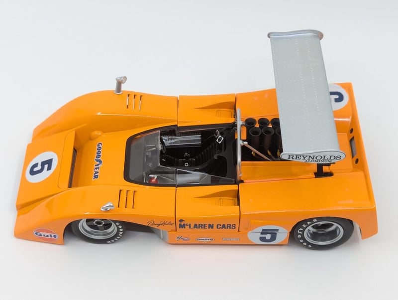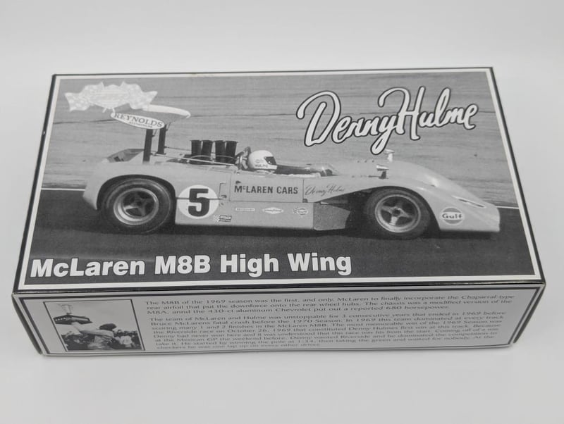 MODEL MCLAREN M8B HIGH WING Item Size: Height: 10cm, Width: 34cm, Depth: 19.5cm, Weight: 0.5Kg Denny Hulme, 1:18 Scale, Georgia Marketing & Promotions Condition: Good - Refer To Images RACK 8B 587711+2