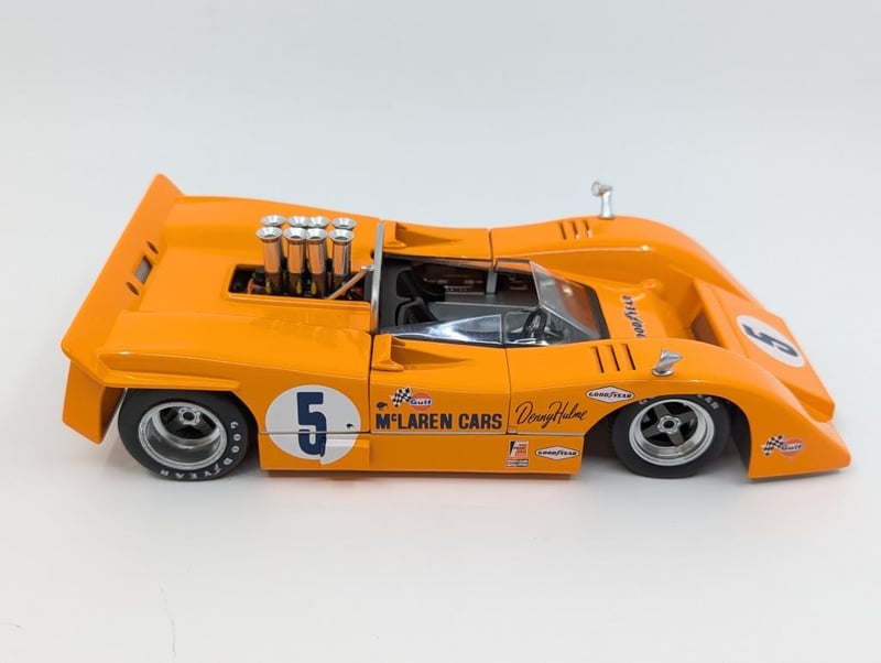 MODEL MCLAREN M8A Item Size: Height: 10cm, Width: 34cm, Depth: 19.5cm, Weight: 0.5Kg Denny Hulme, 1:18 Scale, Georgia Marketing & Promotions Condition: Good - Refer To Images RACK 8B 587711+3