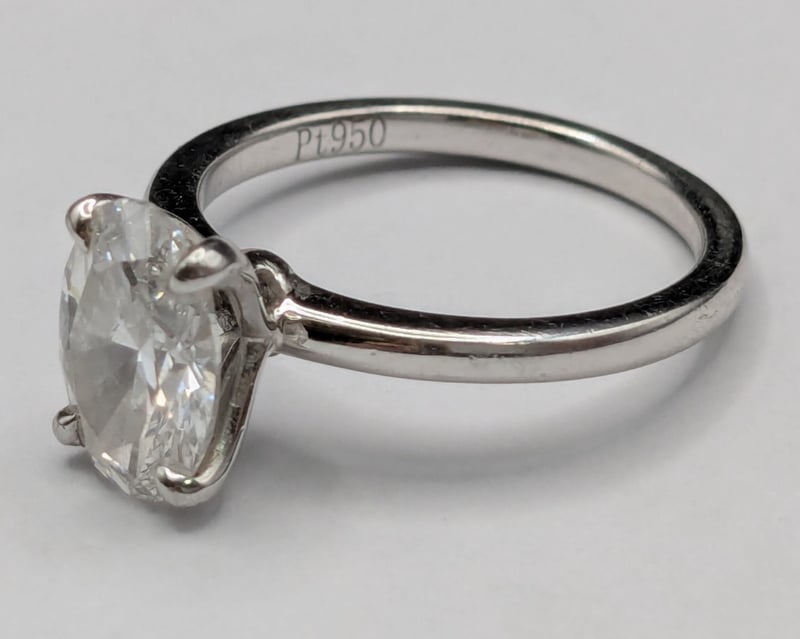 PLATINUM, 1.55CT OVAL BRILLIANT CUT DIAMOND, SOLITAIRE RING.