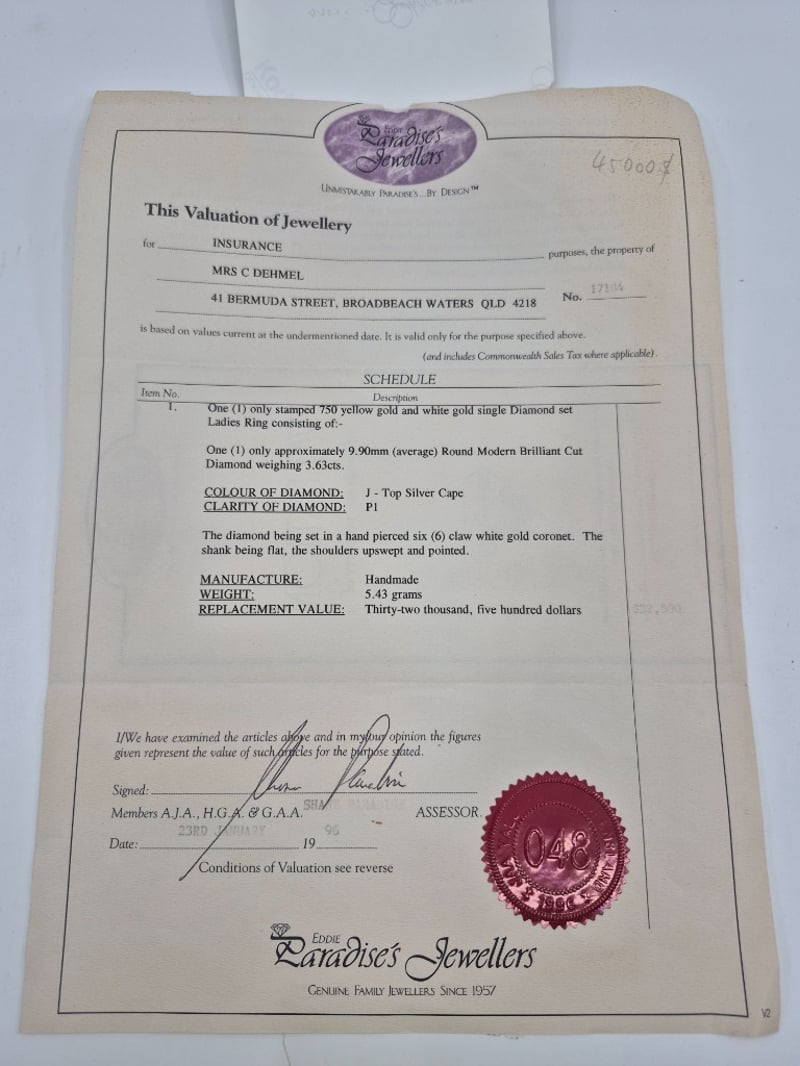 This valuation has been conducted by an independent third-party professional. The valuation amount is an assessment by the issuing valuer and does not reflect the auction value of the item.