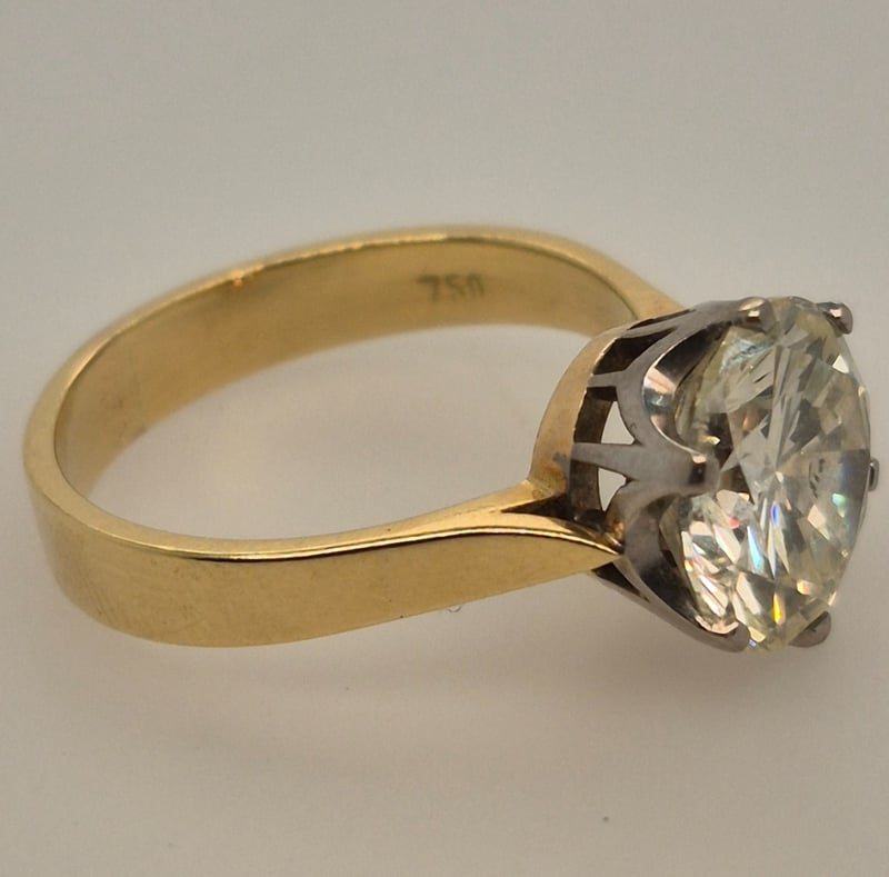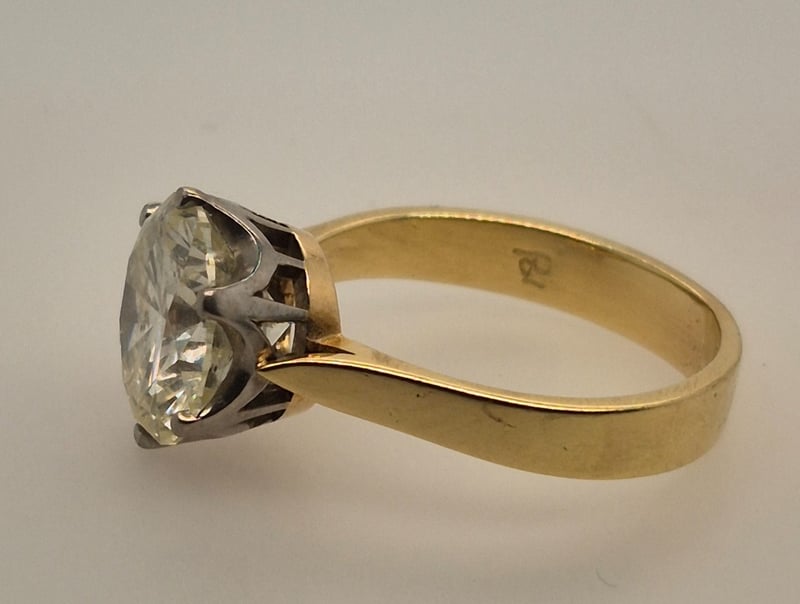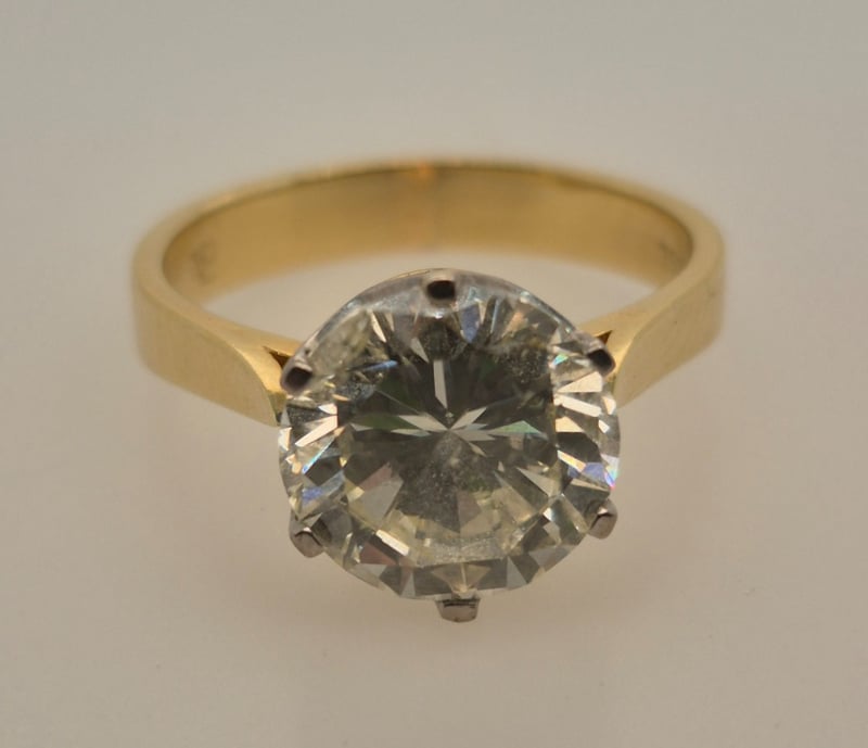 Featuring 3.63Ct Round Modern Brilliant Cut Diamond Being Held In A Hand Pierced 6 Claw White Gold Coronet.