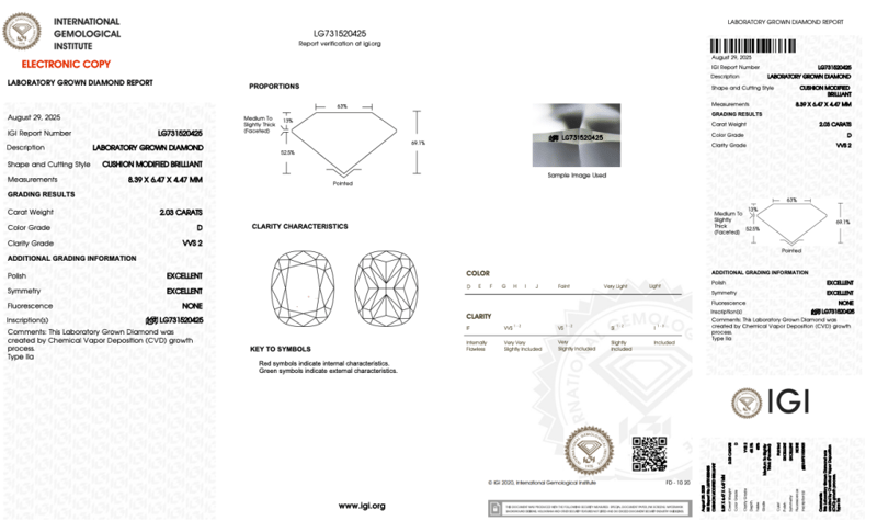 Please note that while all lab grown diamonds listed include certification, the report number or identification may vary upon arrival. This is due to standard manufacturing and batching processes. However, the diamond’s specifications — including carat, color, cut, and clarity — will match or may even exceed those advertised.