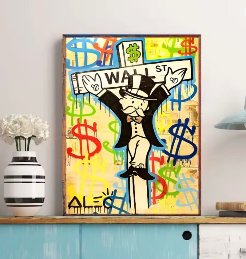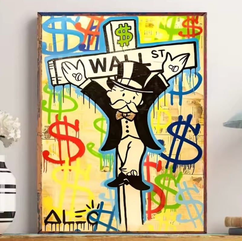 (AFTER) ALEC MONOPOLY "WALL STREET CROSS " POSTER PRINT (AFTER) ALEC MONOPOLY "MILLIONAIRE SERIES WALL STREET CROSS " GRAFITTI POSTER PRINT. PRINTED ON CRACK BACK SATIN. UNFRAMED 40 X 60CM. THIS ITEM IS A REPLICA AND INSPIRED BY THE ORIGINAL. //NR16// 1611192+4
