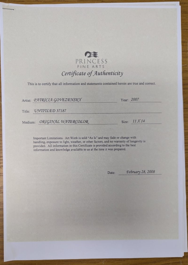 PATRICIA GOVEZENSKY ( 1961 - )Original Water Colour And Ink On PaperTitle: Untitled 37187Image Size: 32cm x 24cmFrame Size: 57cm x 49cmSignature Details: Signed Lower LeftAccompanied By A Certificate Of AuthenticityCondition: Good - Refer To Images584933+16
