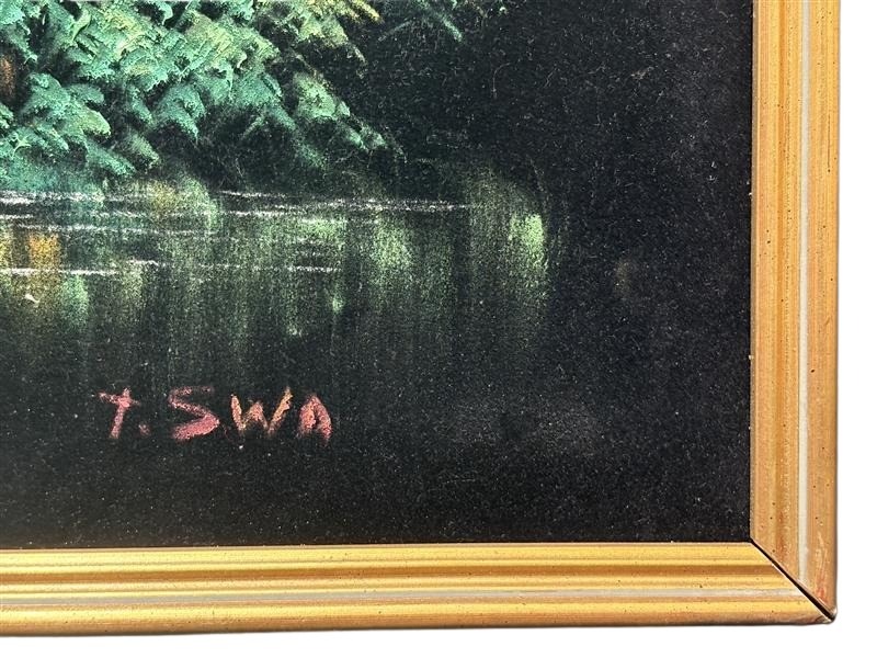 T.SWAAcrylic On Black Velvet, FramedTitle: Balinese Riverside Landscape With HutSignature Details: Signed Lower Right T.SwaCondition: Fair - Refer To ImagesSr562196+6