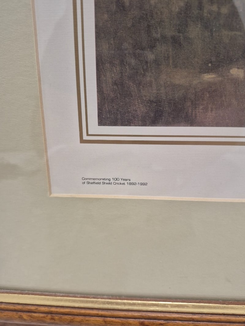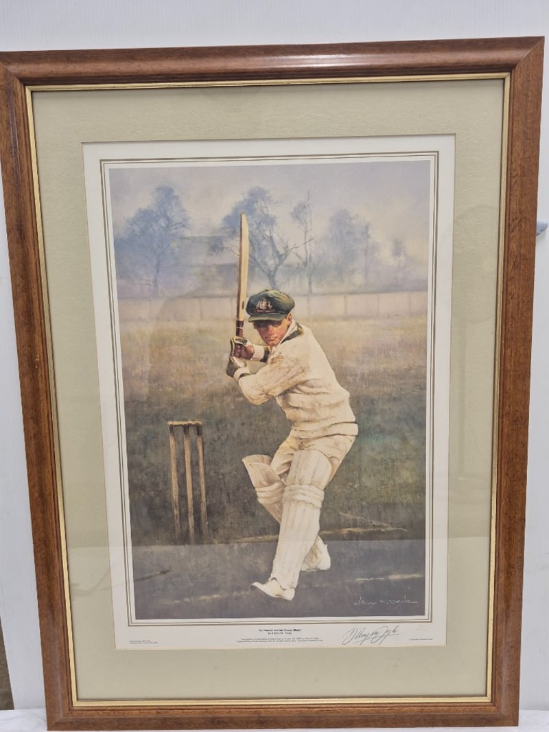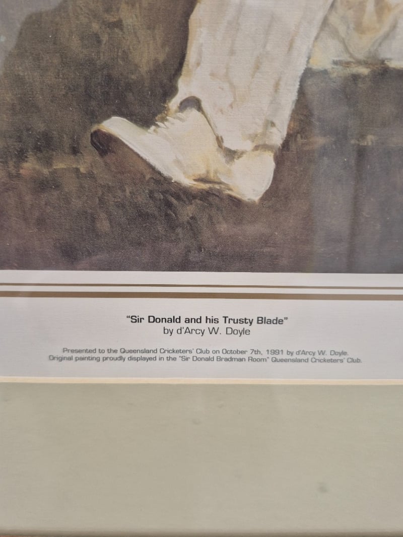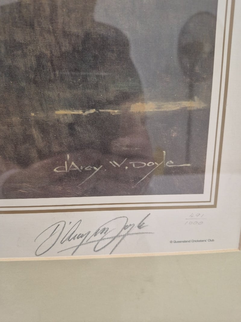 D'ARCEY W DOYLEFramed Limited Edition Lithograph On PaperTitle: Don Bradman And His Trusty BladeImage Size: 64cm x 43cmFrame Size: 86cm x 63cmItem Size: Height: 86cm, Width: 63cm, Depth: 2cmEdition: 491/1000Signature Details: Signed Lower RightCondition: Good - Refer To Images586110+10
