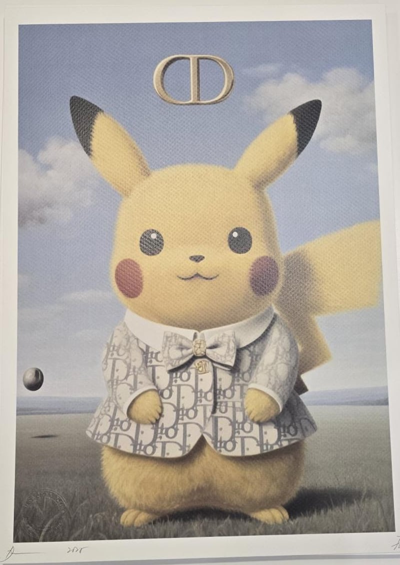 DEATH NYC Title: Dior Pikachu Archival Print On Textured Fine Art Watercolor Paper, Hand-Signed By Artist And Numbered /100, 30 X 21 Cm Edition: 100 Size: 45Cm X 32Cm Paper: 300 Gsm Fine Art Paper Signed By Death Nyc (Made In Nyc) Comes With Certificate Of Authenticity Card And Gold Seal Sticker Death Chooses To Keep Her Identity Anonymous, She Believes That It Gives Her More Freedom To Continue To Work On The Street. She Began Painting On Walls And Floors Of Popular Shops In Soho And Chelsea Area Of New York City. She Gets The Name Death From The Abbreviation Of “Don’T Easily Abandon The Hope”. Death Tries To Ridicule The Mainstream Media By Making Fun Of Popular Images. 585013+8