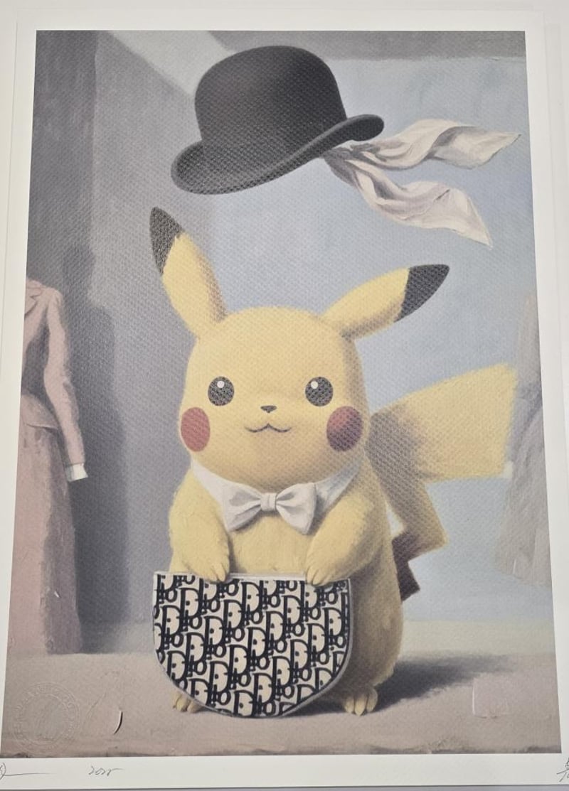 DEATH NYC Title: Bowler Hat Pikachu Archival Print On Textured Fine Art Watercolor Paper, Hand-Signed By Artist And Numbered /100, 30 X 21 Cm Edition: 100 Size: 45Cm X 32Cm Paper: 300 Gsm Fine Art Paper Signed By Death Nyc (Made In Nyc) Comes With Certificate Of Authenticity Card And Gold Seal Sticker Death Chooses To Keep Her Identity Anonymous, She Believes That It Gives Her More Freedom To Continue To Work On The Street. She Began Painting On Walls And Floors Of Popular Shops In Soho And Chelsea Area Of New York City. She Gets The Name Death From The Abbreviation Of “Don’T Easily Abandon The Hope”. Death Tries To Ridicule The Mainstream Media By Making Fun Of Popular Images 585013+9