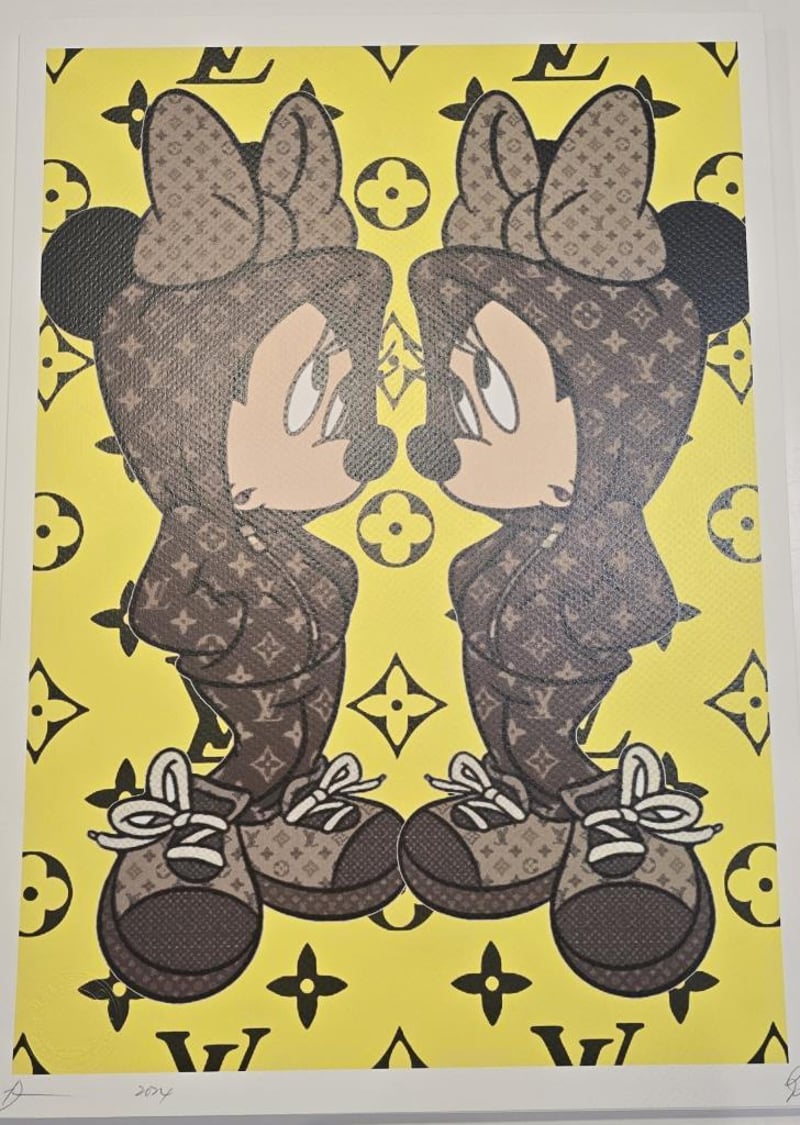 DEATH NYC Title: Lv Minnies Archival Print On Textured Fine Art Watercolor Paper, Hand-Signed By Artist And Numbered /100, 30 X 21 Cm Edition: 100 Size: 45Cm X 32Cm Paper: 300 Gsm Fine Art Paper Signed By Death Nyc (Made In Nyc) Comes With Certificate Of Authenticity Card And Gold Seal Sticker Death Chooses To Keep Her Identity Anonymous, She Believes That It Gives Her More Freedom To Continue To Work On The Street. She Began Painting On Walls And Floors Of Popular Shops In Soho And Chelsea Area Of New York City. She Gets The Name Death From The Abbreviation Of “Don’T Easily Abandon The Hope”. Death Tries To Ridicule The Mainstream Media By Making Fun Of Popular Images. 585013+10