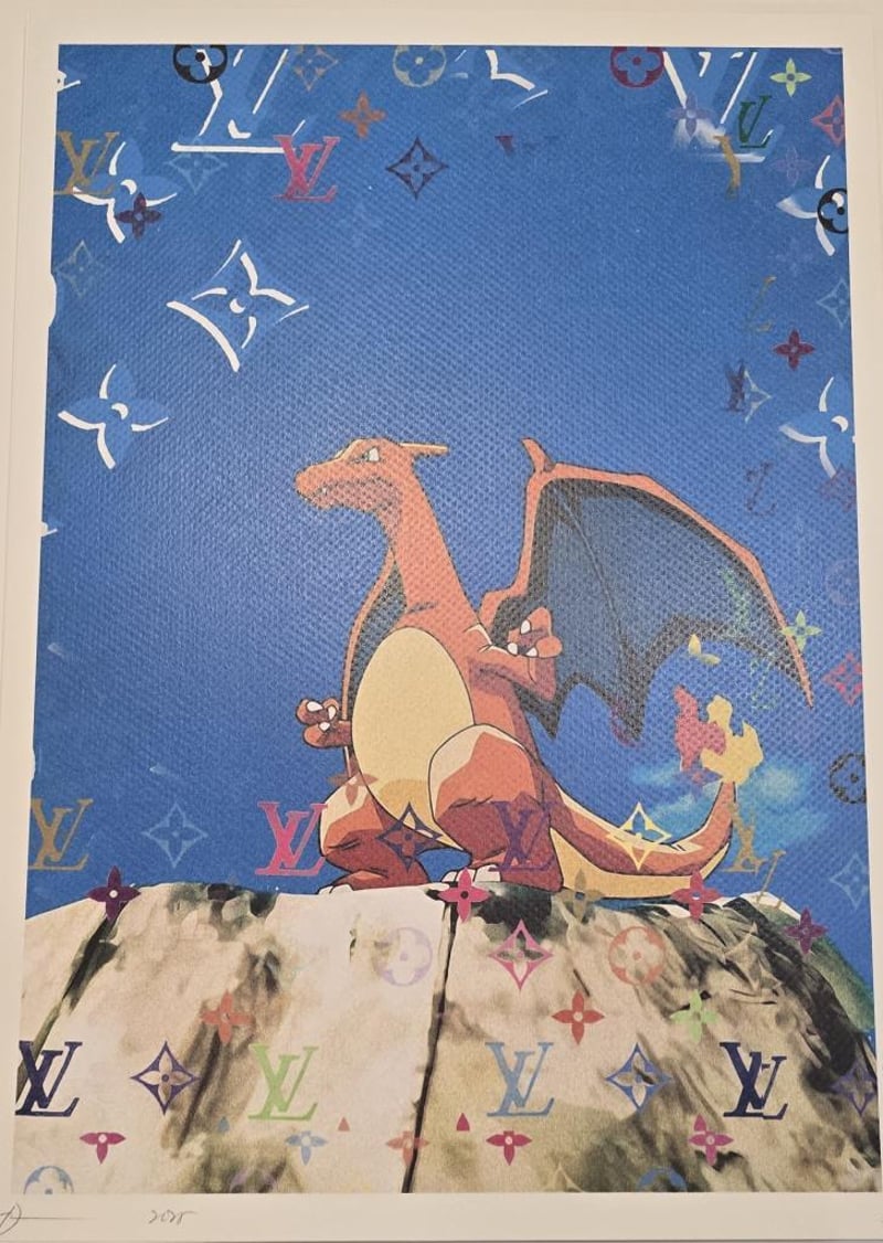 DEATH NYC Title: Charizard Archival Print On Textured Fine Art Watercolor Paper, Hand-Signed By Artist And Numbered /100, 30 X 21 Cm Edition: 100 Size: 45Cm X 32Cm Paper: 300 Gsm Fine Art Paper Signed By Death Nyc (Made In Nyc) Comes With Certificate Of Authenticity Card And Gold Seal Sticker Death Chooses To Keep Her Identity Anonymous, She Believes That It Gives Her More Freedom To Continue To Work On The Street. She Began Painting On Walls And Floors Of Popular Shops In Soho And Chelsea Area Of New York City. She Gets The Name Death From The Abbreviation Of “Don’T Easily Abandon The Hope”. Death Tries To Ridicule The Mainstream Media By Making Fun Of Popular Images. 585013+20