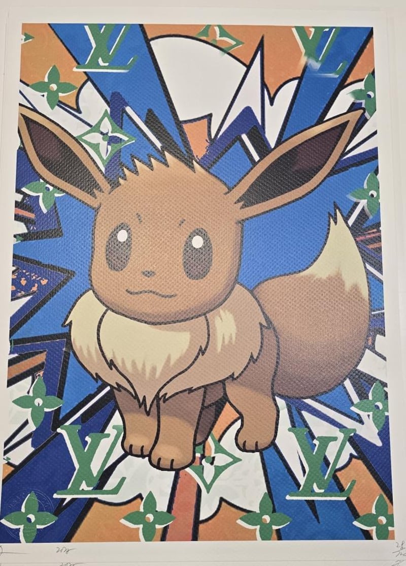 DEATH NYC Title: Eevee Archival Print On Textured Fine Art Watercolor Paper, Hand-Signed By Artist And Numbered /100, 30 X 21 Cm Edition: 100 Size: 45Cm X 32Cm Paper: 300 Gsm Fine Art Paper Signed By Death Nyc (Made In Nyc) Comes With Certificate Of Authenticity Card And Gold Seal Sticker Death Chooses To Keep Her Identity Anonymous, She Believes That It Gives Her More Freedom To Continue To Work On The Street. She Began Painting On Walls And Floors Of Popular Shops In Soho And Chelsea Area Of New York City. She Gets The Name Death From The Abbreviation Of “Don’T Easily Abandon The Hope”. Death Tries To Ridicule The Mainstream Media By Making Fun Of Popular Images 585013+21