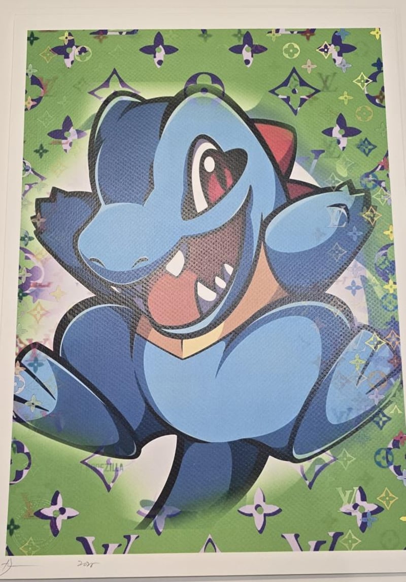 DEATH NYC Title: Totodile Green Archival Print On Textured Fine Art Watercolor Paper, Hand-Signed By Artist And Numbered /100, 30 X 21 Cm Edition: 100 Size: 45Cm X 32Cm Paper: 300 Gsm Fine Art Paper Signed By Death Nyc (Made In Nyc) Comes With Certificate Of Authenticity Card And Gold Seal Sticker Death Chooses To Keep Her Identity Anonymous, She Believes That It Gives Her More Freedom To Continue To Work On The Street. She Began Painting On Walls And Floors Of Popular Shops In Soho And Chelsea Area Of New York City. She Gets The Name Death From The Abbreviation Of “Don’T Easily Abandon The Hope”. Death Tries To Ridicule The Mainstream Media By Making Fun Of Popular Images 585013+26