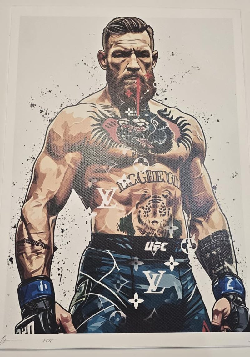 DEATH NYC Title: Conor Mcgregor Archival Print On Textured Fine Art Watercolor Paper, Hand-Signed By Artist And Numbered /100, 30 X 21 Cm Edition: 100 Size: 45Cm X 32Cm Paper: 300 Gsm Fine Art Paper Signed By Death Nyc (Made In Nyc) Comes With Certificate Of Authenticity Card And Gold Seal Sticker Death Chooses To Keep Her Identity Anonymous, She Believes That It Gives Her More Freedom To Continue To Work On The Street. She Began Painting On Walls And Floors Of Popular Shops In Soho And Chelsea Area Of New York City. She Gets The Name Death From The Abbreviation Of “Don’T Easily Abandon The Hope”. Death Tries To Ridicule The Mainstream Media By Making Fun Of Popular Images. 585013+38