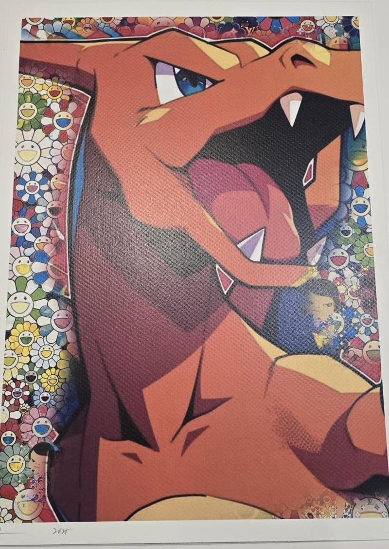 DEATH NYC Title: Charizard Archival Print On Textured Fine Art Watercolor Paper, Hand-Signed By Artist And Numbered /100, 30 X 21 Cm Edition: 100 Size: 45Cm X 32Cm Paper: 300 Gsm Fine Art Paper Signed By Death Nyc (Made In Nyc) Comes With Certificate Of Authenticity Card And Gold Seal Sticker Death Chooses To Keep Her Identity Anonymous, She Believes That It Gives Her More Freedom To Continue To Work On The Street. She Began Painting On Walls And Floors Of Popular Shops In Soho And Chelsea Area Of New York City. She Gets The Name Death From The Abbreviation Of “Don’T Easily Abandon The Hope”. Death Tries To Ridicule The Mainstream Media By Making Fun Of Popular Images. 585013+42