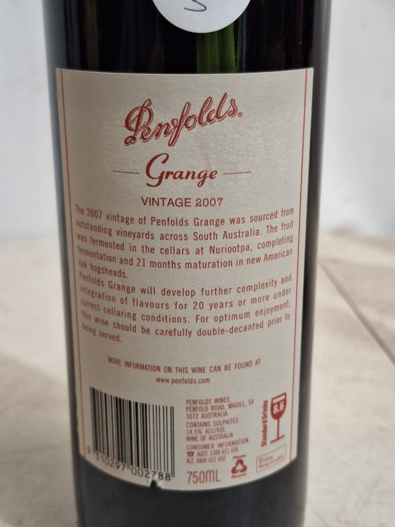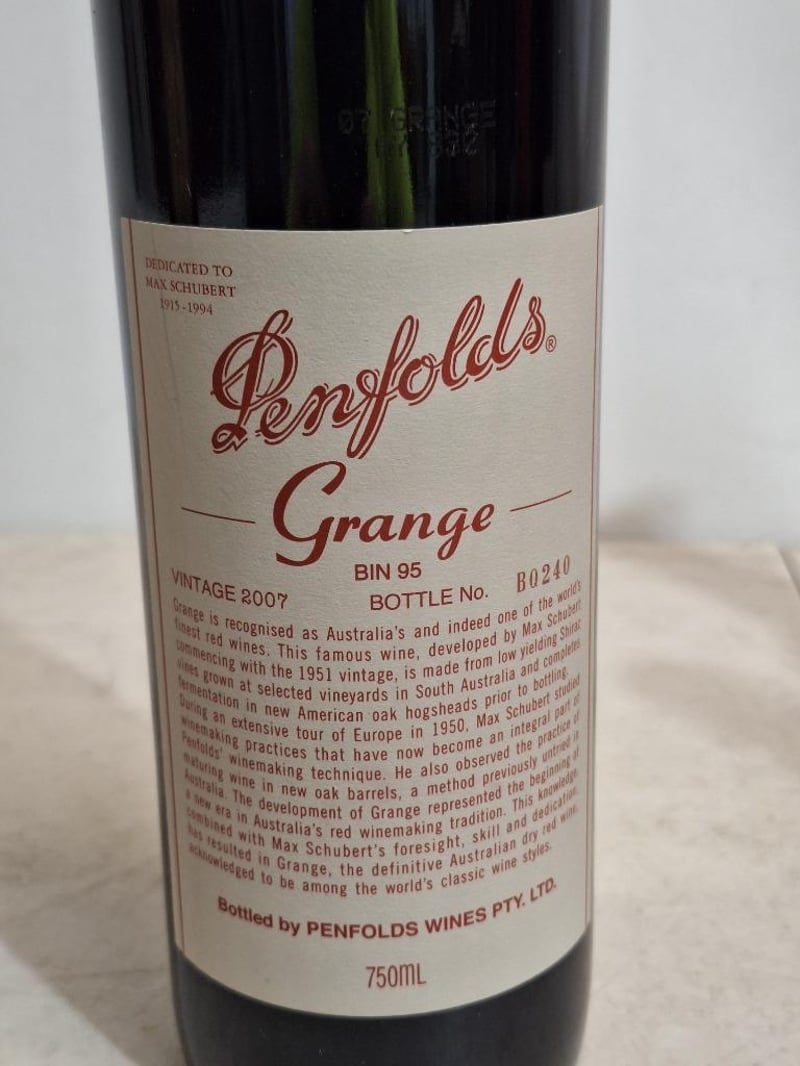 PENFOLDS GRANGE BIN 95, VINTAGE 2007, BOTTLE NO BQ240, 750ML, 14%VOL