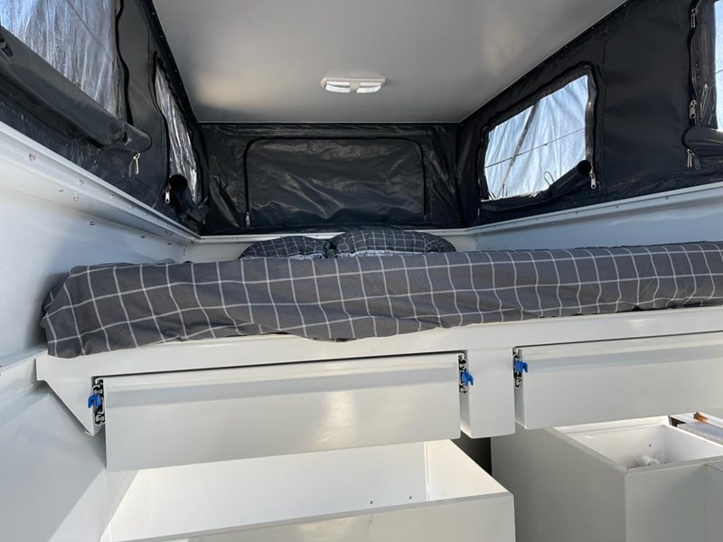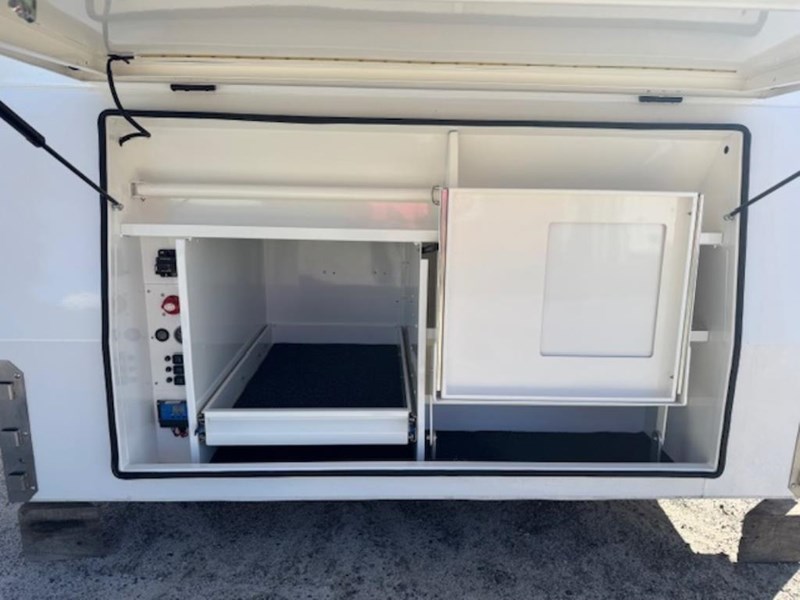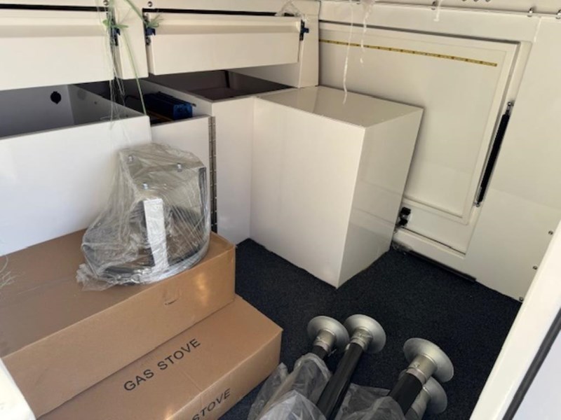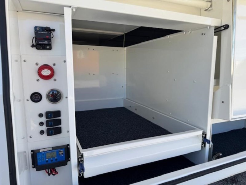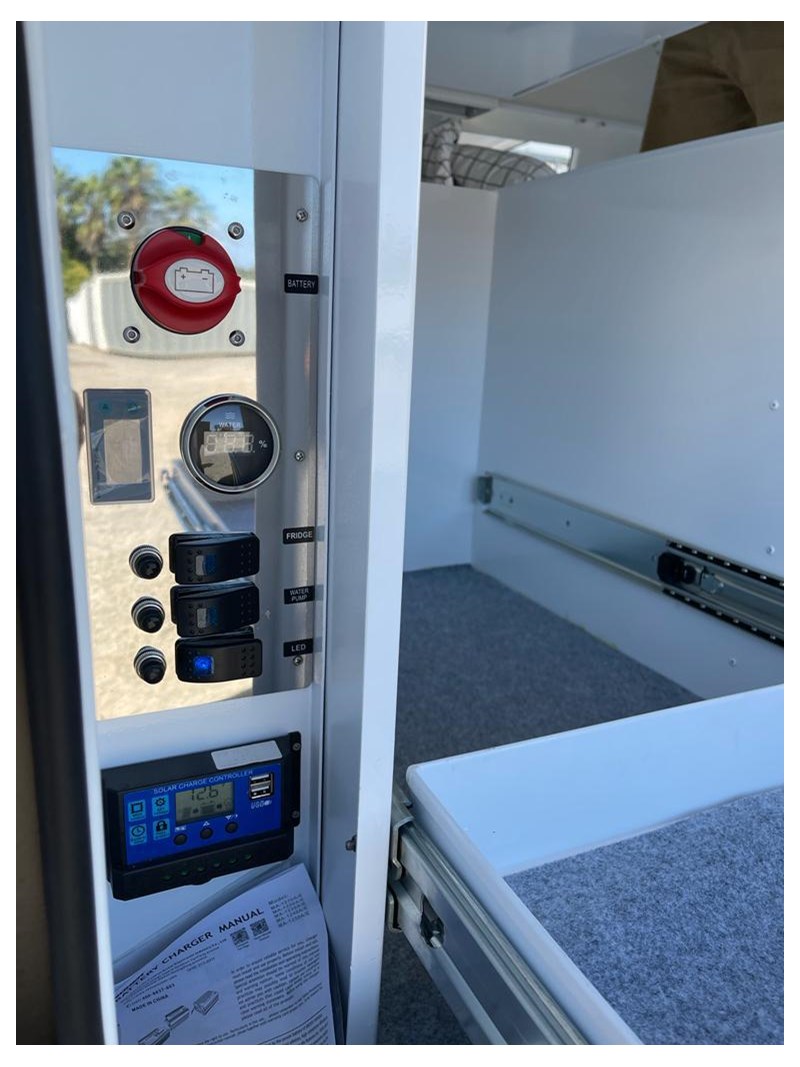 ELECTRICAL SYSTEM: 2 x Deep Cycle Battery 100AH, 12-volt outlet, 2000-watt inverter 240v, 30 Amp DC Battery Charger, Main Switch panel, 2 x 100watts Total 200 watts Solar panels fitted to the roof with regulator