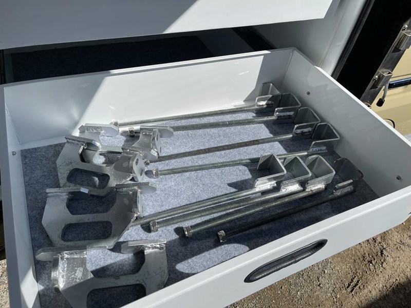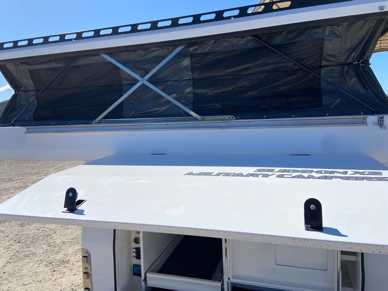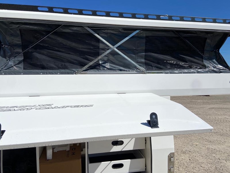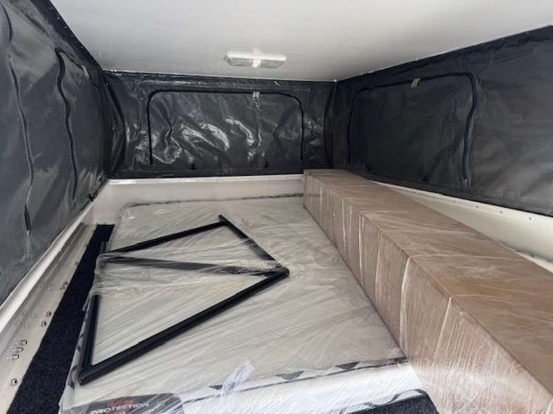 EXTERNAL FEATURES: 4 x Heavy Duty Adjustable legs (lifting camper) free standing, 4 x Lock down clamps (to suit different types of utes)