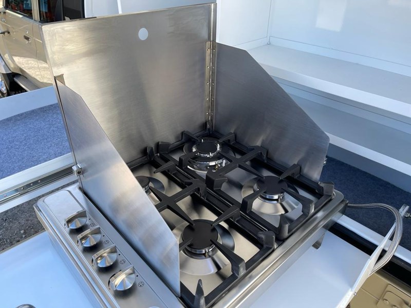 KITCHEN: Stainless steel sink, AGA approve 4 burner gas stove (moveable), High pressure electric water pump with quick release connector.