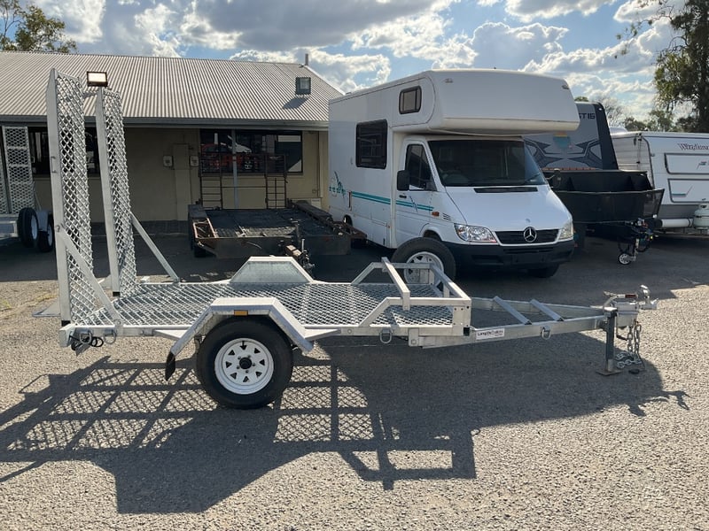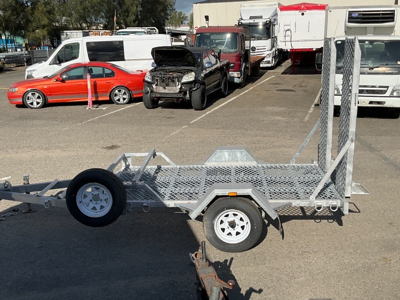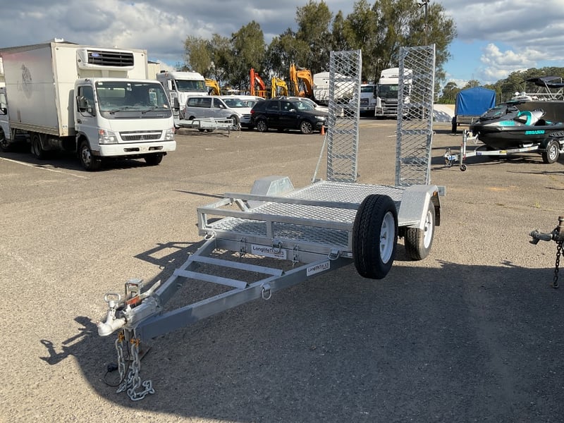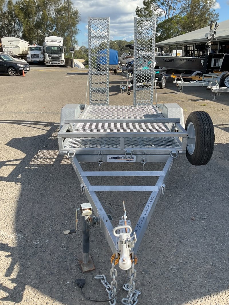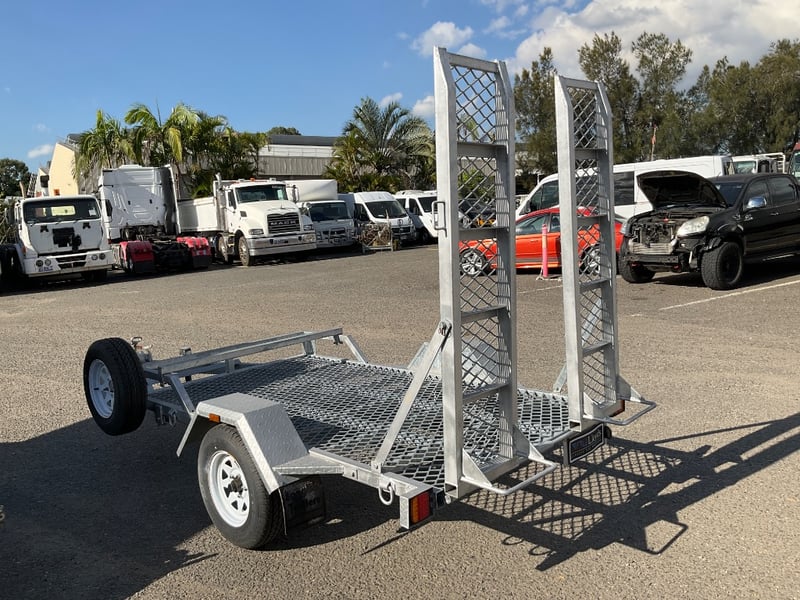 Description: unused plant trailer without compliance plate, tilting platform, dove tail ramps, brakes, spare tyre, jack stand, LED tail lights,.