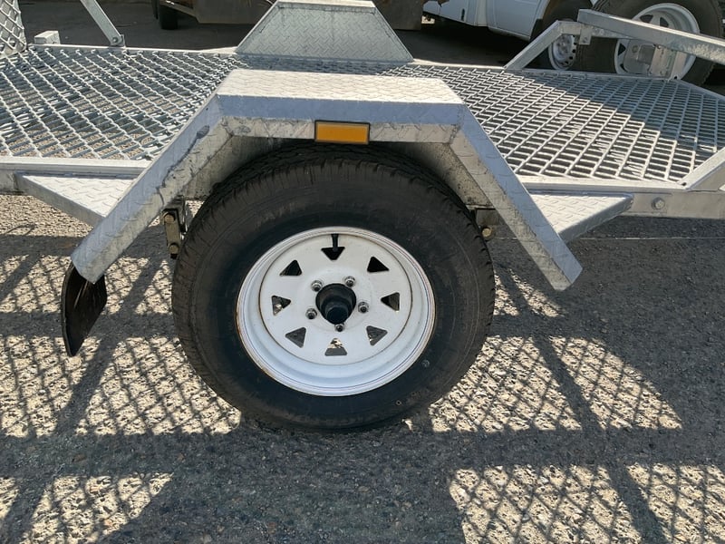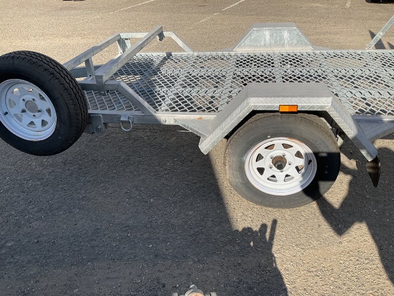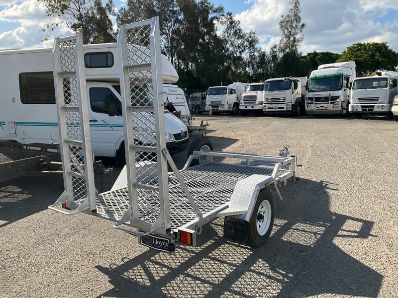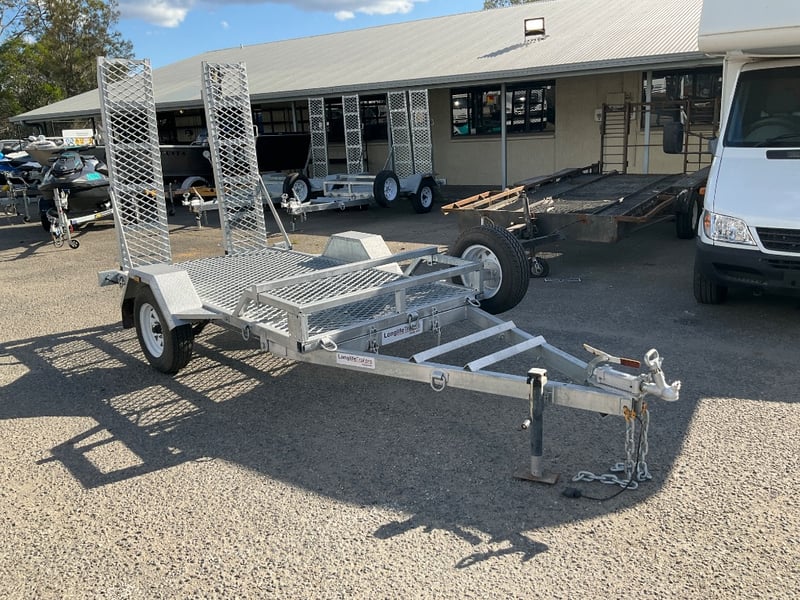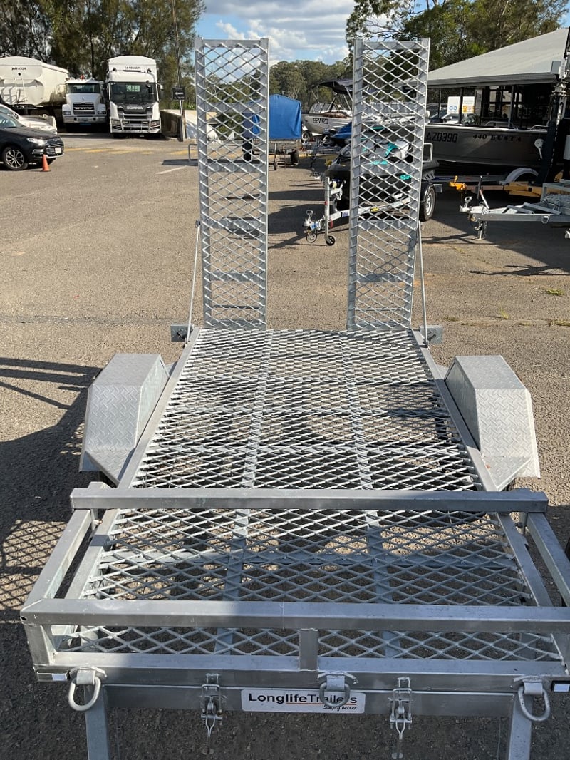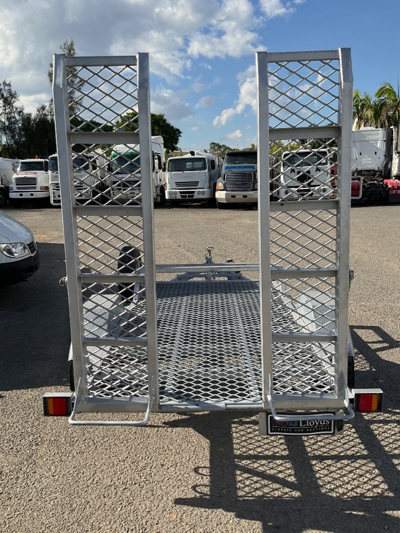 Description: unused plant trailer without compliance plate, tilting platform, dove tail ramps, brakes, spare tyre, jack stand, LED tail lights,.