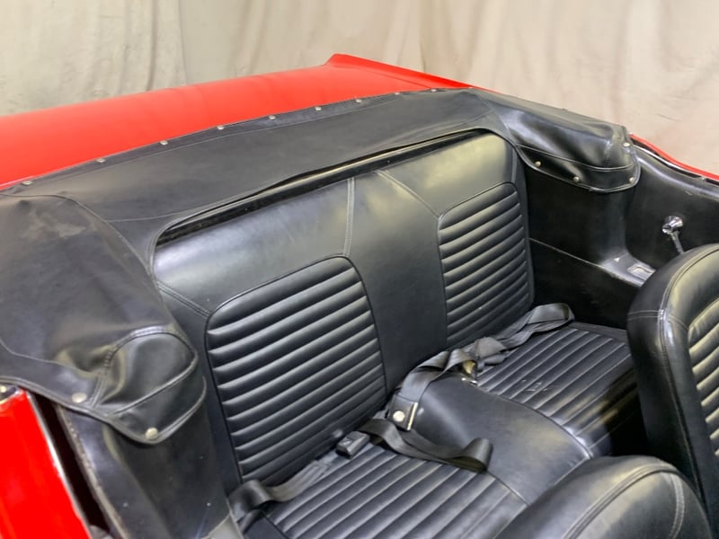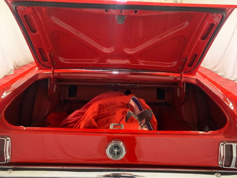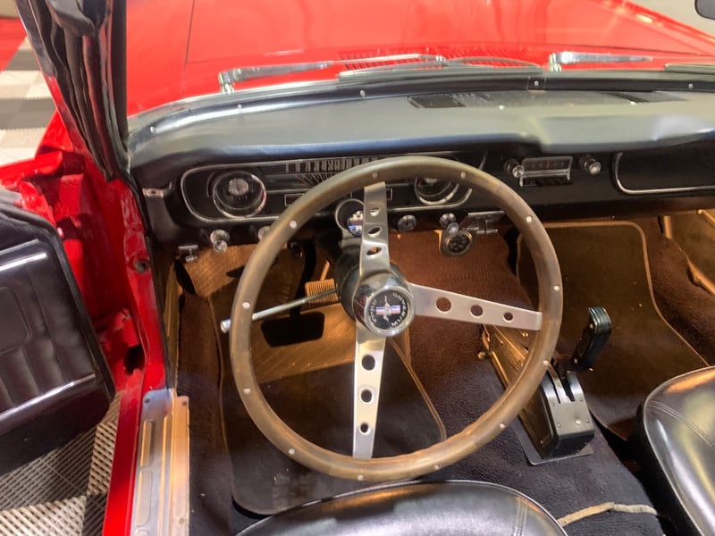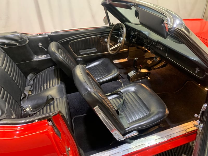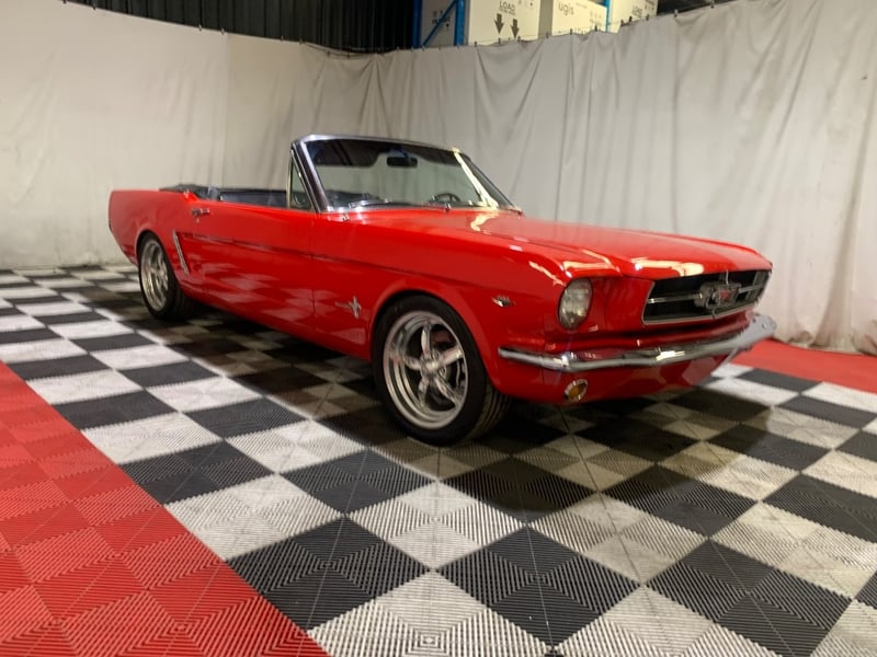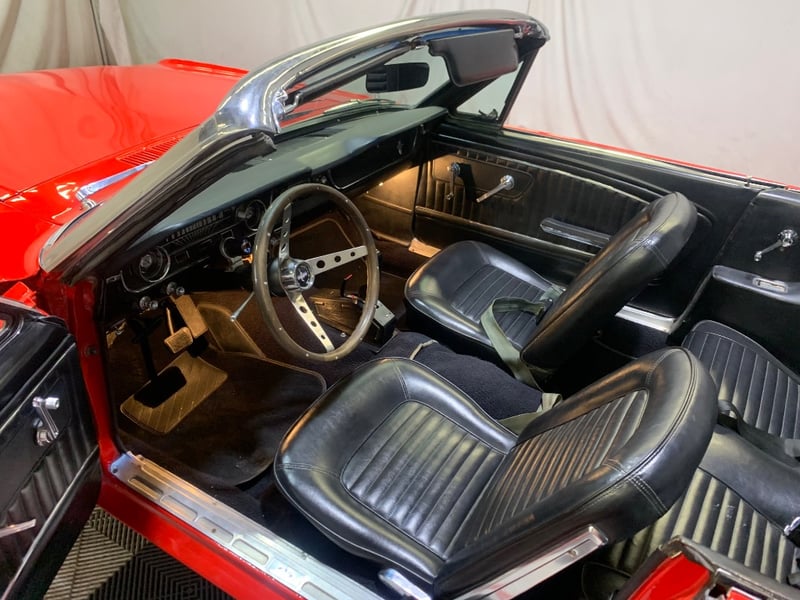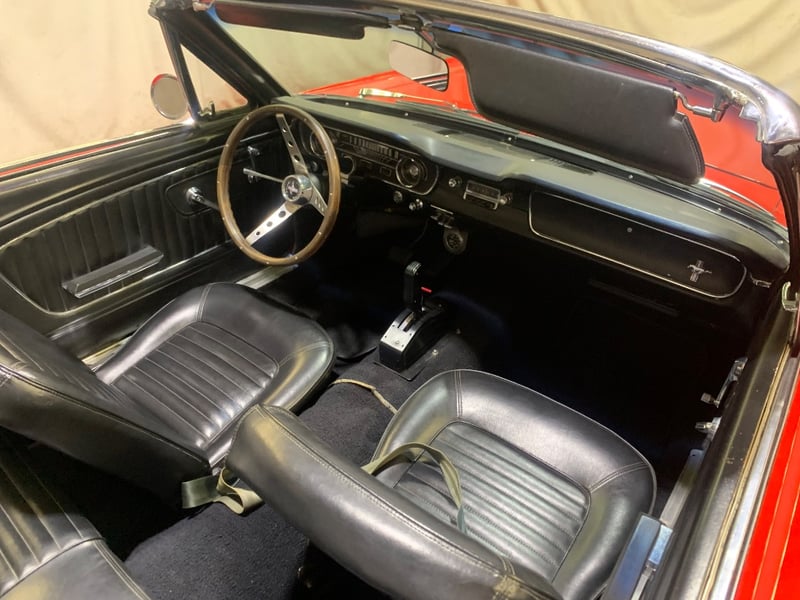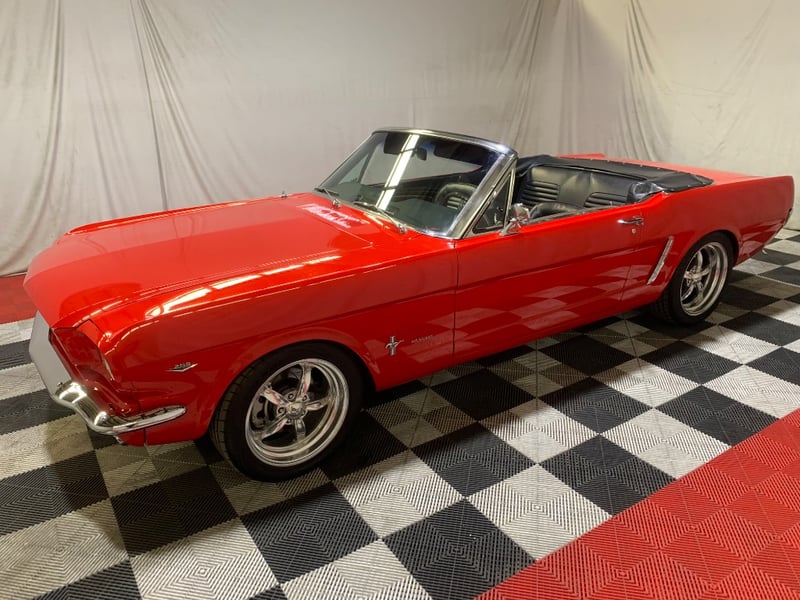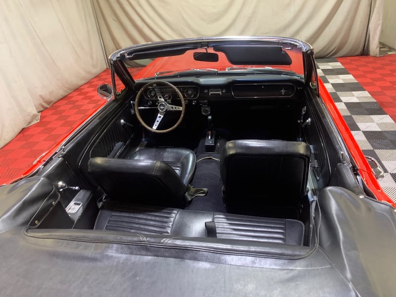A classic first-generation Mustang convertible, finished in Red with left-hand drive, showing an indicated 13,218 miles and powered by a 347ci V8 paired with an automatic transmission.