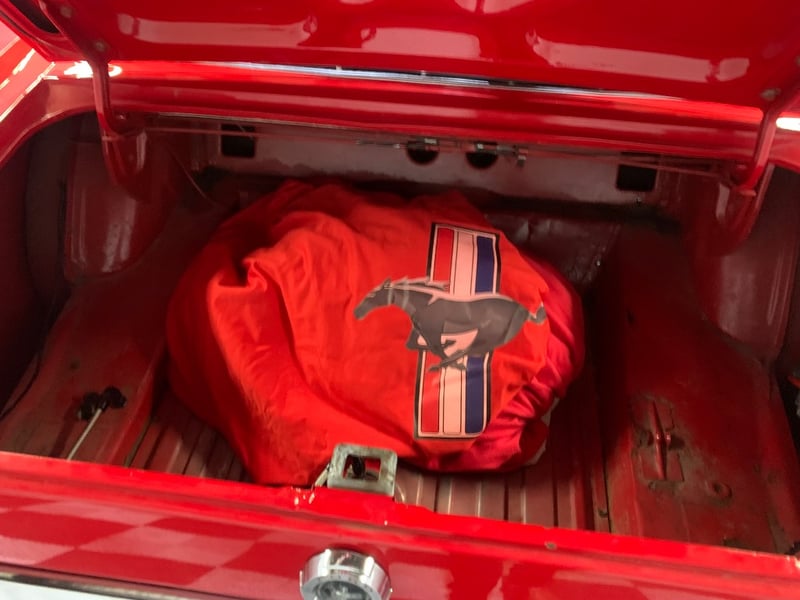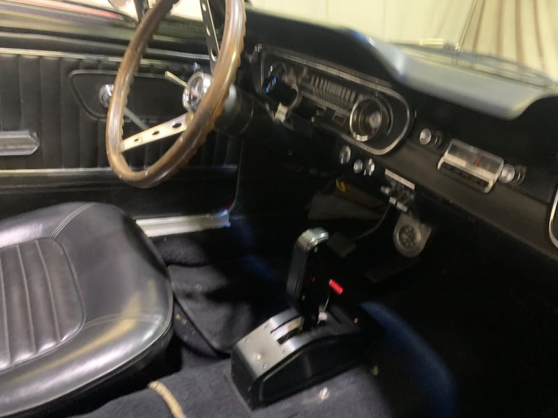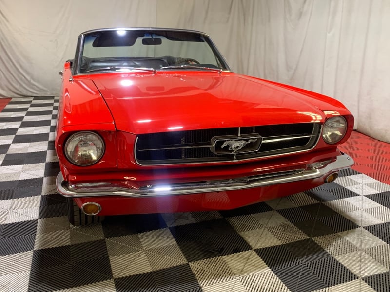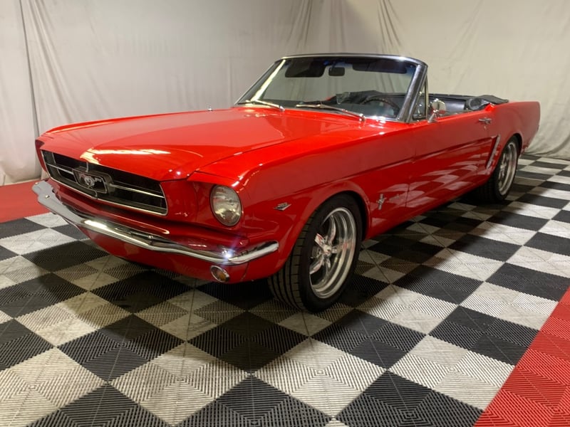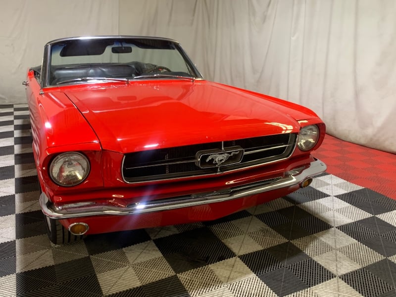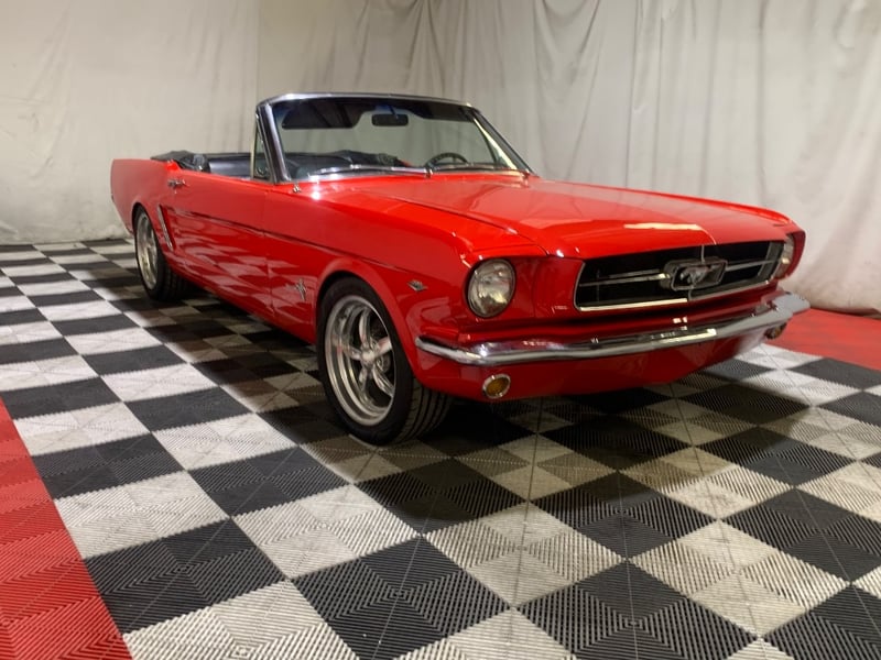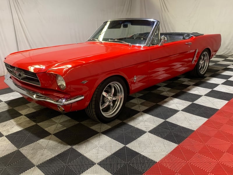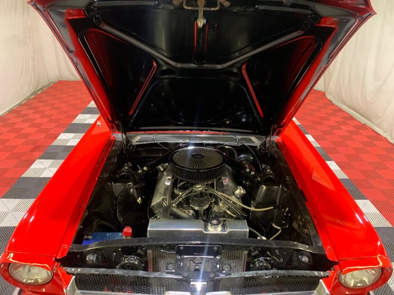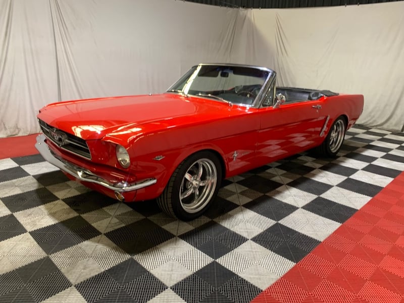 A classic first-generation Mustang convertible, finished in Red with left-hand drive, showing an indicated 13,218 miles and powered by a 347ci V8 paired with an automatic transmission.