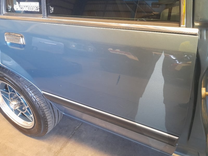 Presented with an owner’s manual and featuring seating for five, this SL/X represents the mid-range trim level in the VH lineup. The exterior displays age-related wear including a scratch on the driver-side passenger door.