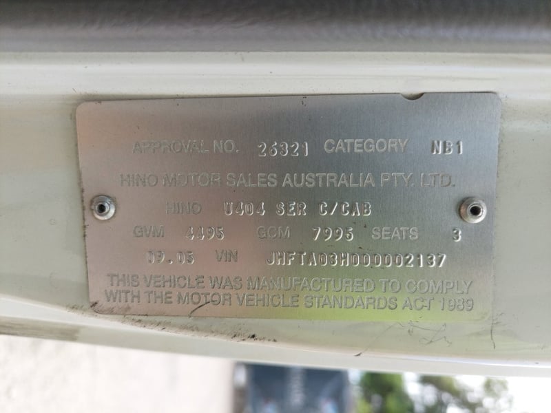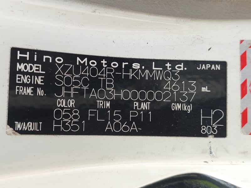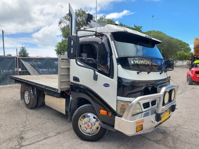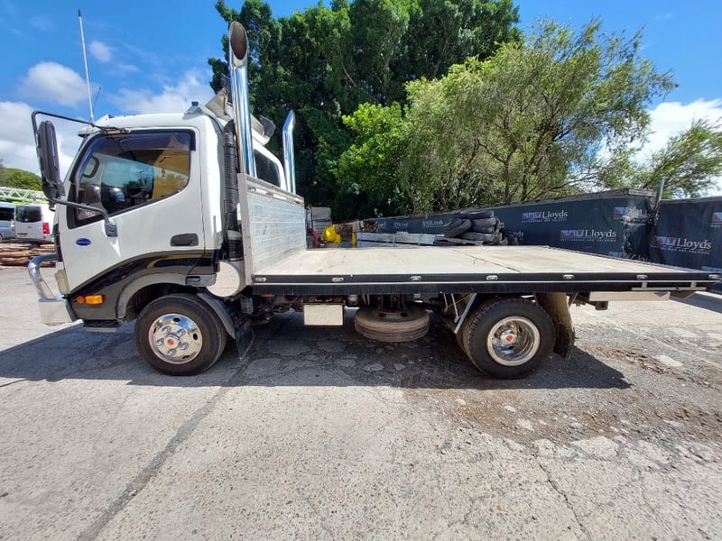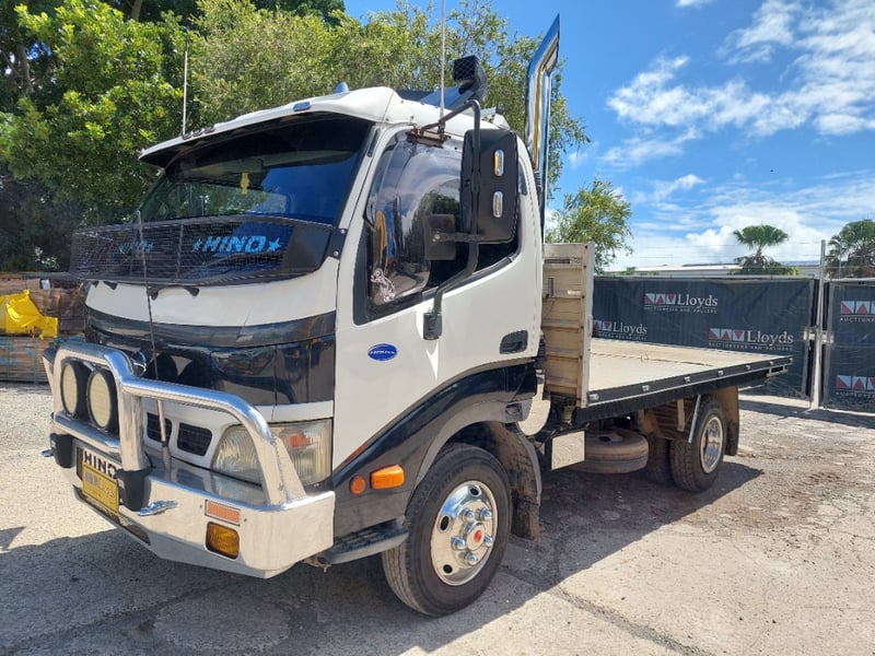 2005 Hino Dutro Truck Year: 2005 Make: Hino Model: Dutro XZU404R-HKMMWQ3 Body: Flat Bed Truck Configuration: 4x2 Odometer Indicated: 469241km Engine: 4 Cylinder Turbo Diesel Transmission: 6 Speed Manual VIN: JHFTA03H000002137 Engine Number: S05CTB15487 (As Per PPSR) Colour: White Seats: 3 Description/Extras: Truck Is Fitted With Duel Exhaust Stack, Rear Water Tank, Bullbar, Cold Air Conditioning, CB Radio, Electric Trailer Brake GVM: Unknown GCM: Unknown Lloyds Stock# 583426+01 #TransportNTrailers Key# M16 Carrara