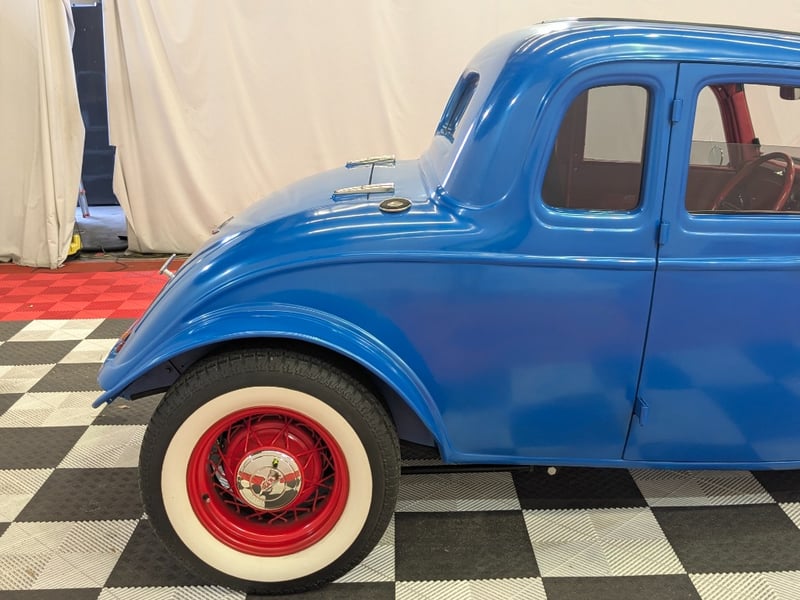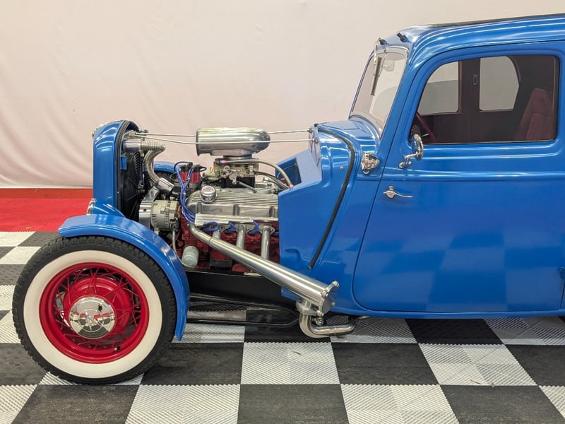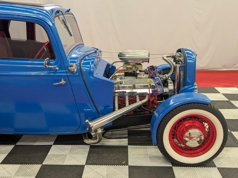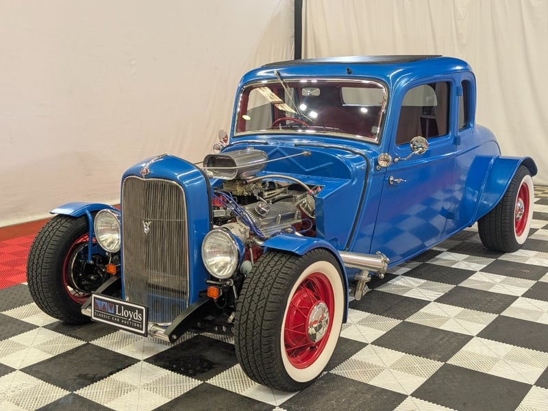 A custom hot rod tribute inspired by Australia’s hot rodding scene of the 1950s and 1960s. This 1934 Ford five‑window coupe features a glass body mould sourced from the well‑known Victorian hot rod “Old Yella” and has been extensively modified in traditional hot rod style.