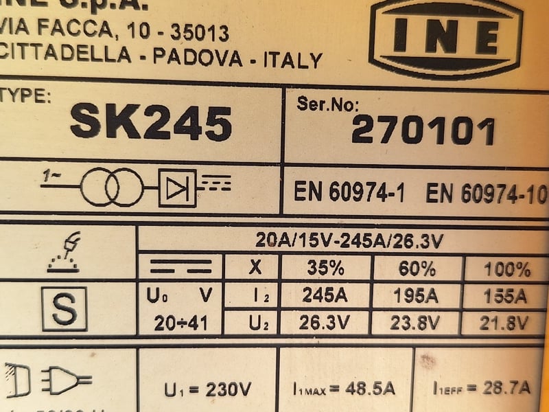 INE Sk245 Mig Welder With INE TK2 Wire Feeder
