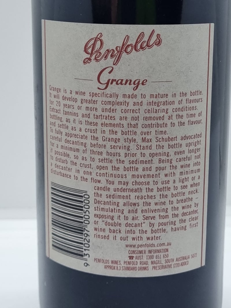 COLOUR Vibrant plum red. NOSE A fusion of blackcurrants, blueberry and boysenberry fruits lavished with cinnamon and sweet spices. Closer inspection suggests earthy, savory aromas laced with roasted chestnut and fresh barrel fermentation richness. PALATE Concentration, power, flavour and balance - archetypal Grange! Masses of berried fruits, yet as with many of the classic releases, a blueberry fruit core. One of the classic vintages of the 1990s that sits alongside 1990, 1991 & 1998.