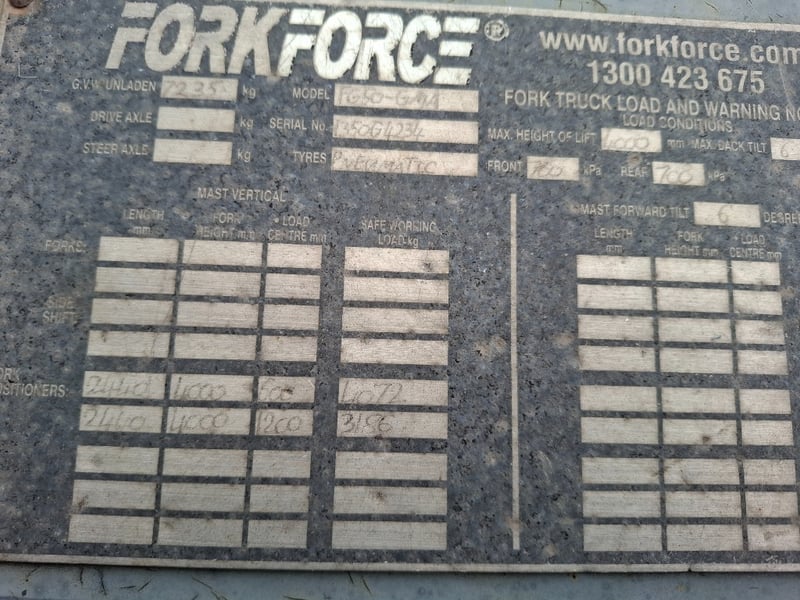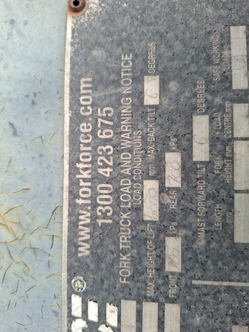 Description: Force Fork Enforcer M Series 50x, runs and drives, Pueumatic Tyres. Surface rust, Digital screen is not working.