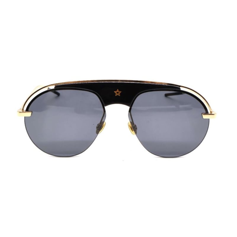 CHRISTIAN DIOR BLACK DIOREVOLUTION PILOT AVIATORS SUNGLASSES Temple Length: 145mm Bridge Size: 15mm Eye Size: 58mm Material Acetate with gold-tone hardware. Additional Condition Report - Moderate sign of wear and scratches throughout Comes With - Certificate of Authenticity CROSSED DOCKED 162838+11