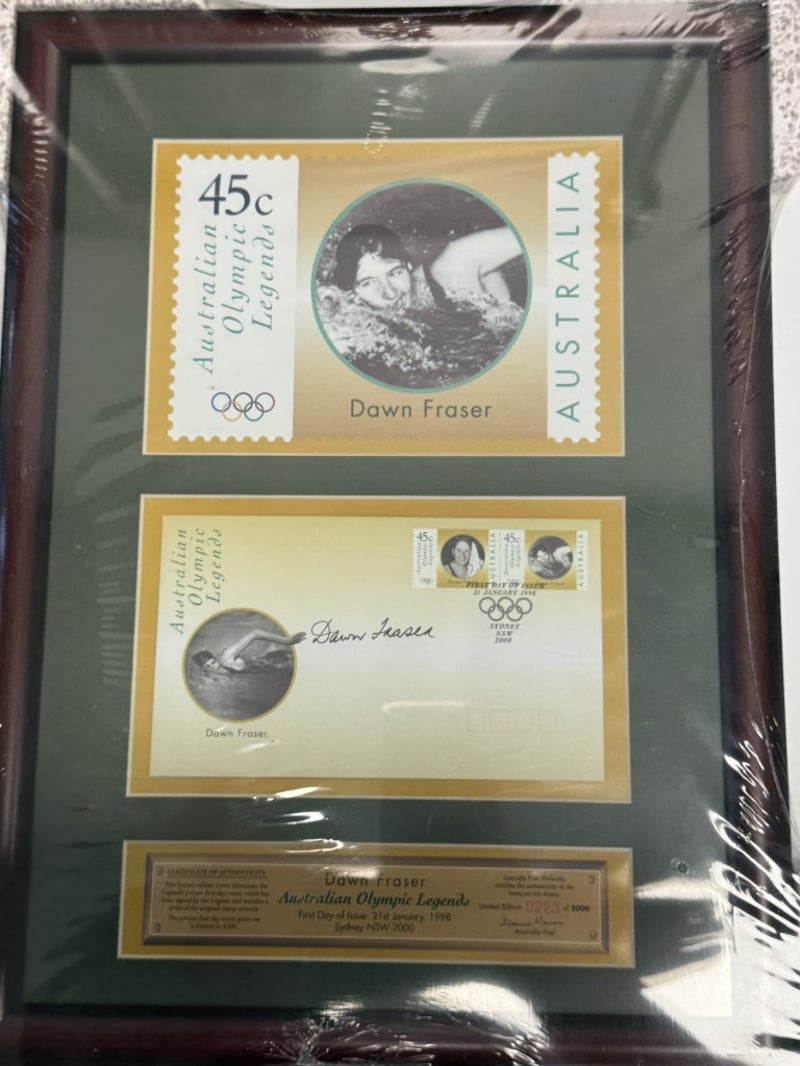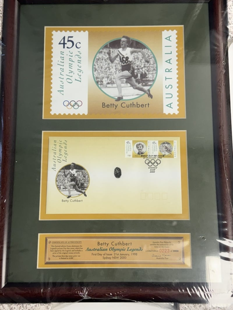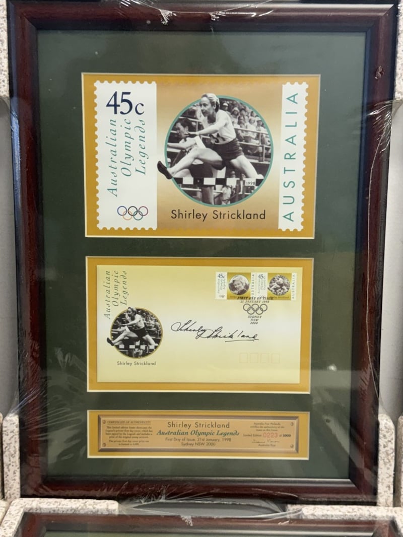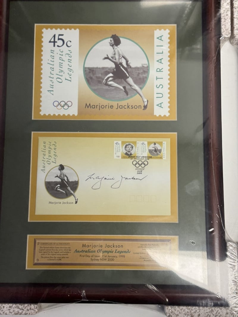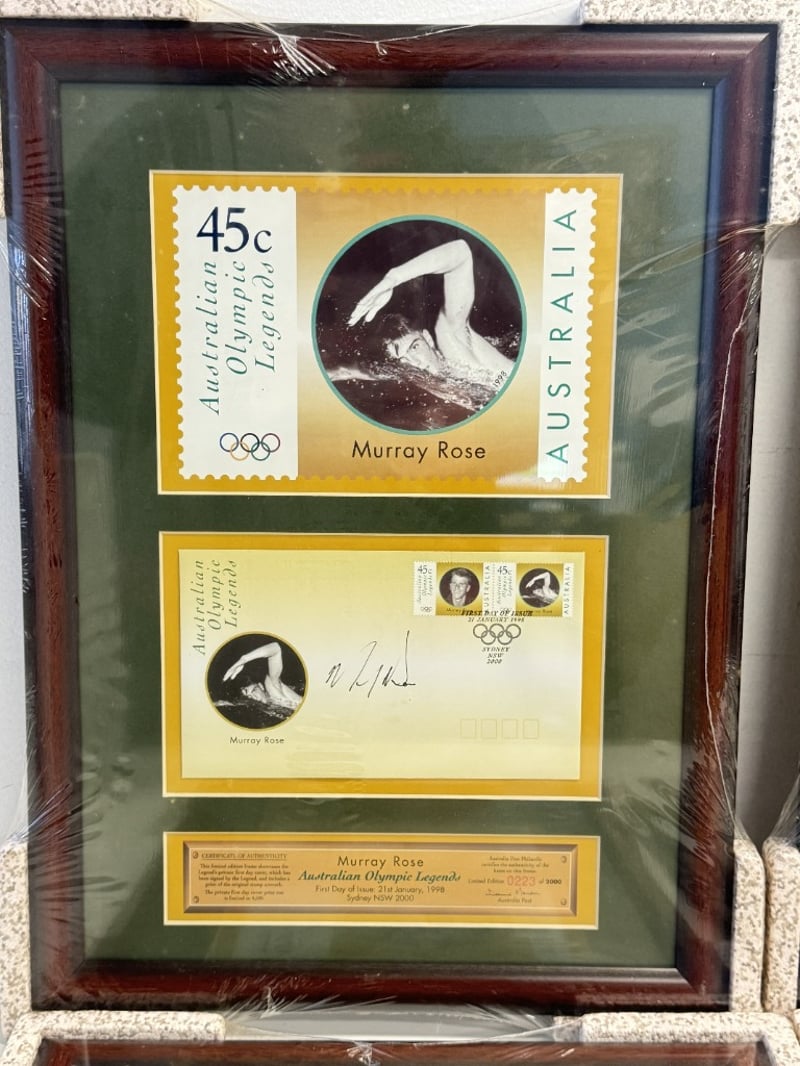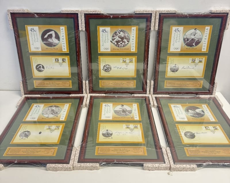 FRAMED COLLECTIBLE SETS OF AUSTRALIAN OLYMPIC LEGENDS, EACH FEATURING A 45C STAMP AND A 50C COIN COMMEMORATING A DIFFERENT ATHLETE