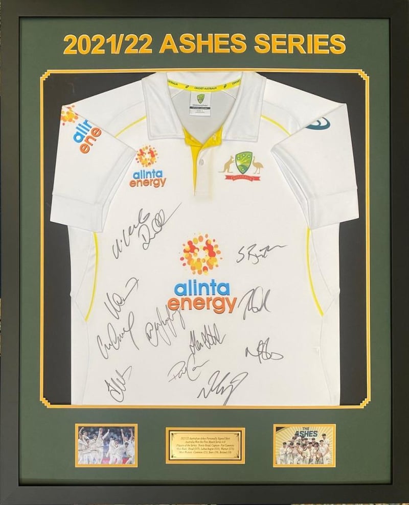 2021/22 AUSTRALIAN ASHES PERSONALLY SIGNED SHIRT "2021/22 VODAFONE ASHES SERIES CHAMPIONS"