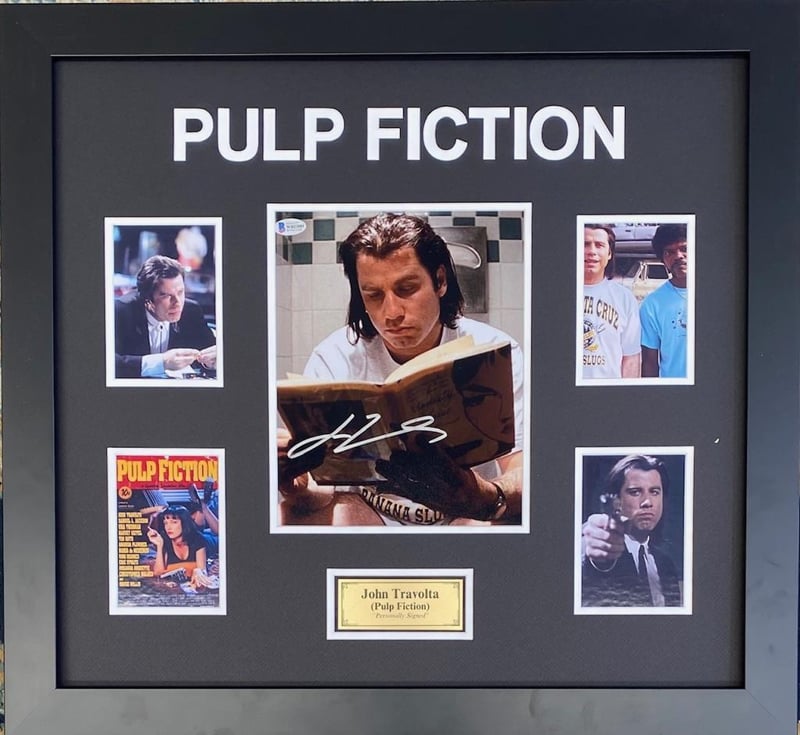 JOHN TRAVOLTA (PULP FICTION) PERSOANLLY SIGNED 10" X 8" PHOTOGRAPH BECKETT COA)Framed Using Double Mats, 4 Unsigned Photographs And A Plaque. Hand Signed By John Travolta Using A Silver MarkerAccompanied By A Certificate Of Authenticity From BeckettCondition: Good - Refer To Images488527+28