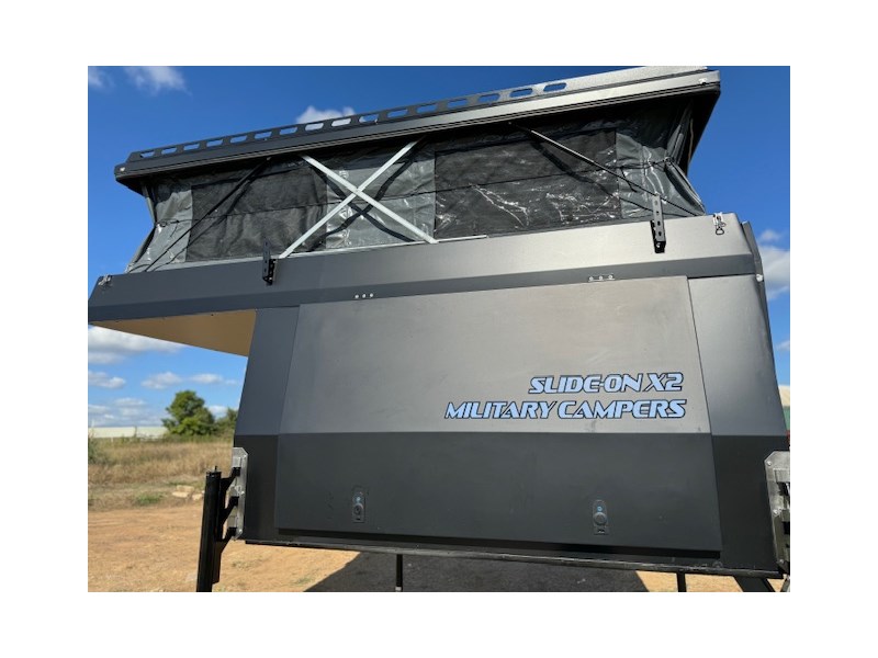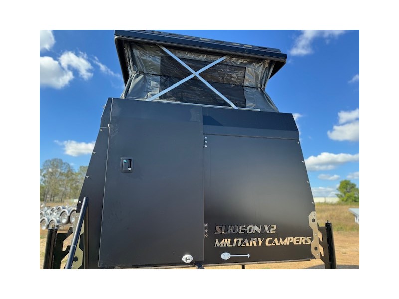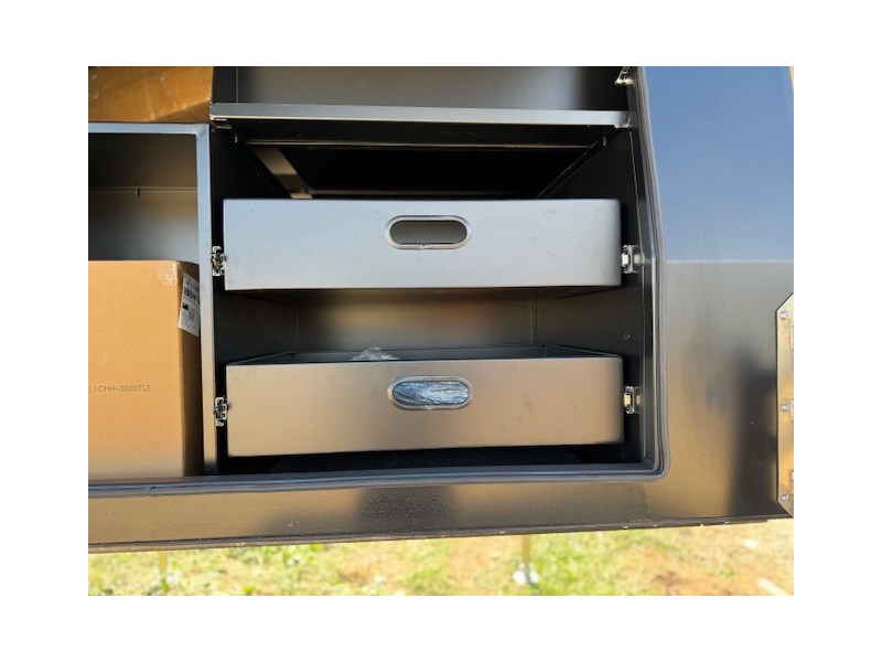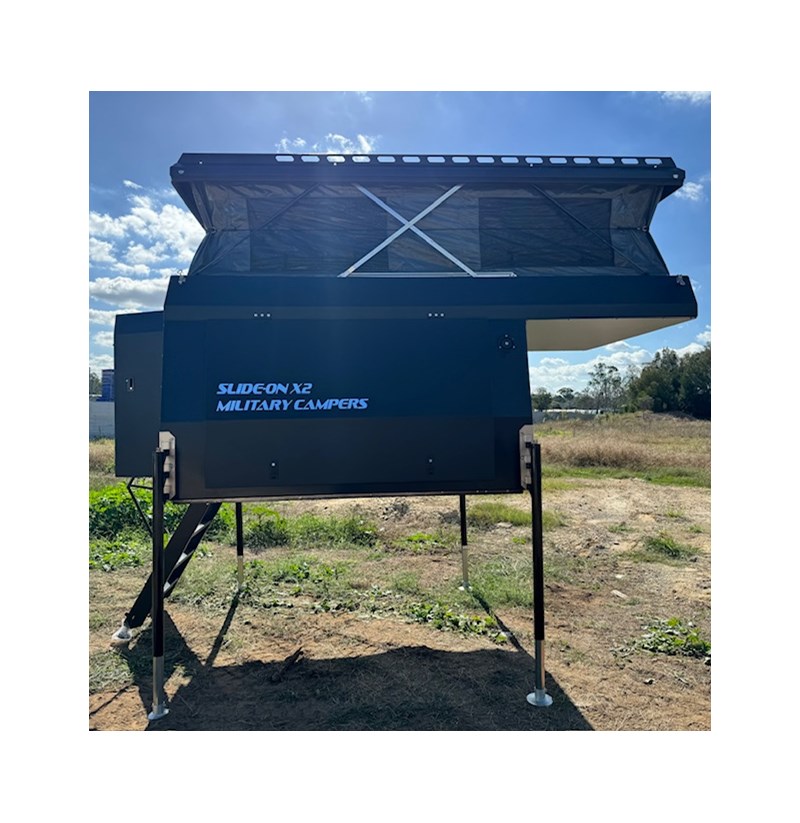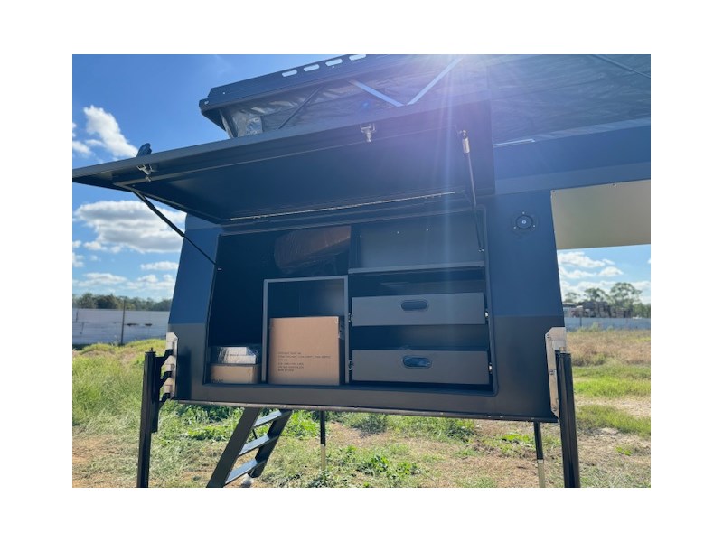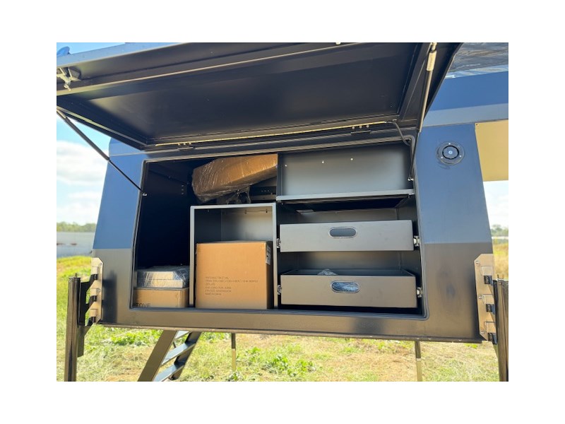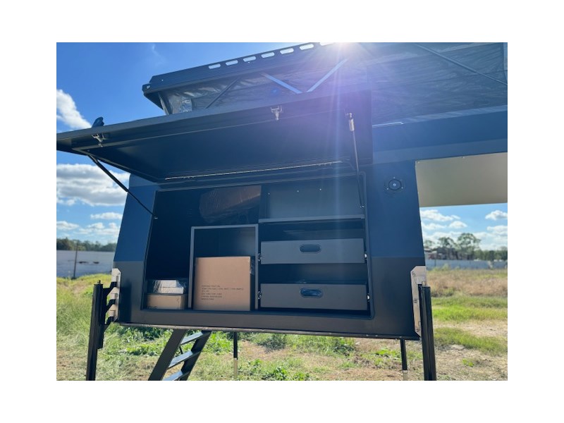 ELECTRICAL SYSTEM: 2 x Deep Cycle Battery 100AH, 12-volt outlet, 2000-watt inverter 240v, 30 Amp DC Battery Charger, Main Switch panel, 2 x 100watts Total 200 watts Solar panels fitted to the roof with regulator TENT DETAILS Simple setup, Self-supporting modern design, High Strength Aluminium Frame, All large windows size 950x 330mm x 6 each window has 3 layers, Bed 1 size: 2060mmx 1670mm with high quality coil spring mattress supplied