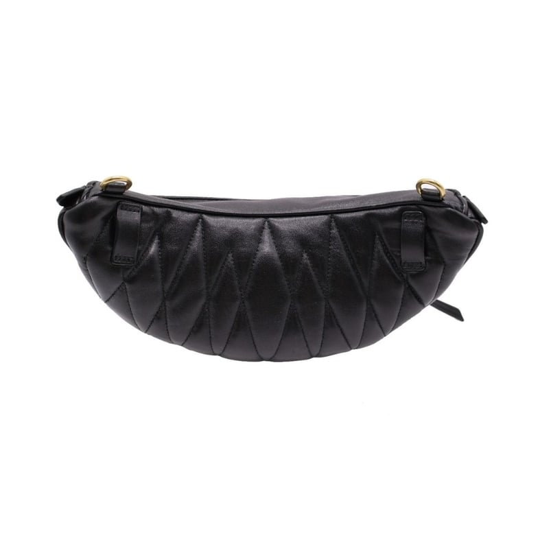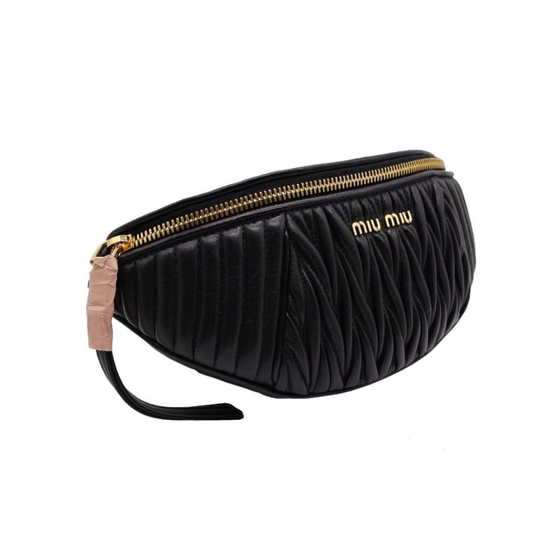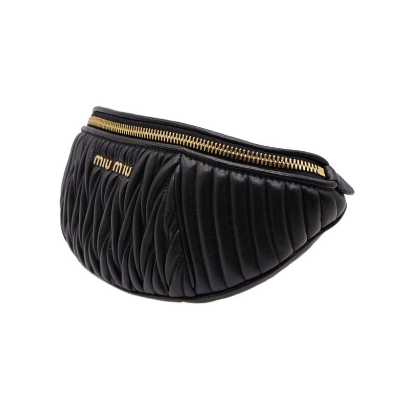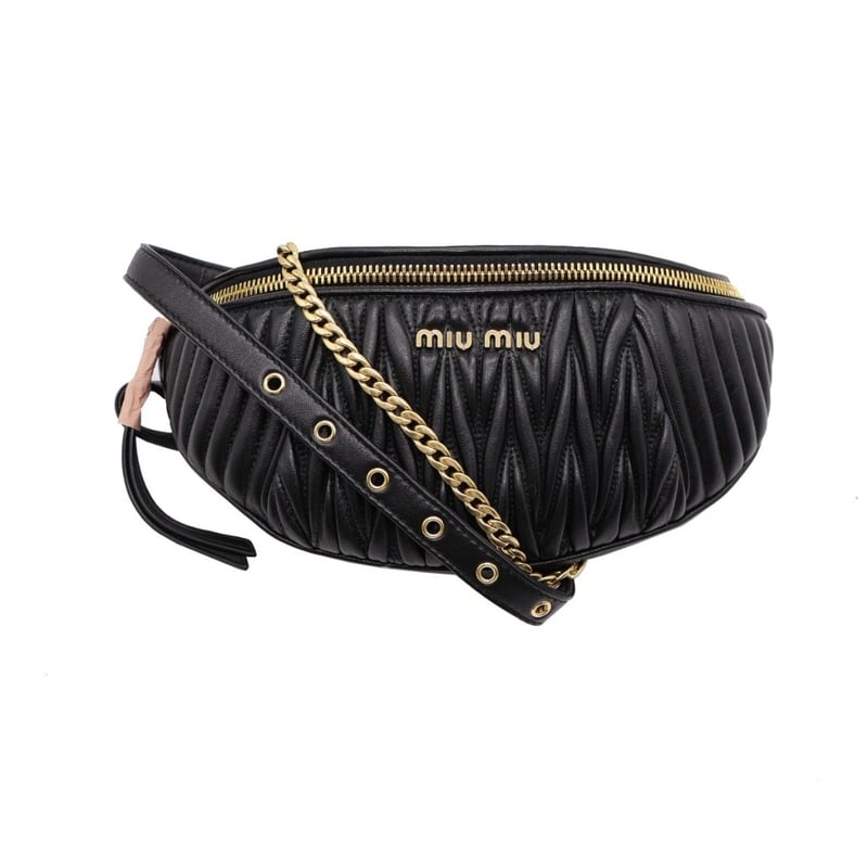 MIU MIU METALLIC BLACK MATELASSE LEATHER BELT BAGItem Size: Height: 12cm, Width: 25cm, Depth: 5.5cmExterior MaterialLeather With Gold-Tone Hardware, Front Zip Closure, A Shoulder Strap And A Waist Strap.Interior MaterialTextile Lining With A Main Compartment.Additional Condition Report- Merely Sign Of Wear On Exterior- Merely Wear In Interior- Minor Scratches On HardwareComes With- Original Box- Care Card- A Detachable Waist Strap- A Detachable Strap- Certificate Of AuthenticityCondition: Good - Refer To ImagesCROSSDOCK162909+88