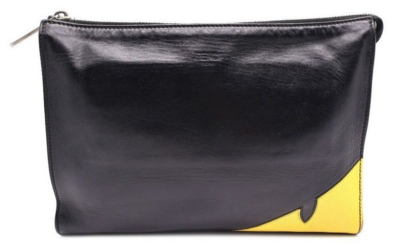 FENDI BLACK/YELLOW LEATHER CLUTCHItem Size: Height: 20cm, Width: 27cm, Depth: 4cmExterior MaterialLeather With Silver-Tone Hardware And Top Zip Closure.Interior MaterialTextile Lining With A Main Compartment, A Patchpocket And 8 Card Slots.Additional Condition Report- Moderate Sign Of Wear And Tears On Exterior- Minor Wear In Interior- Sign Of Wear And Scratches On HardwareComes With- Certificate Of AuthenticityCROSS DOCK155512+40