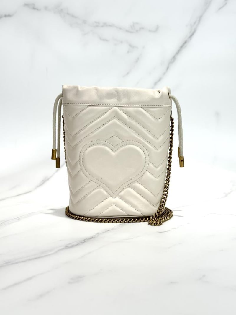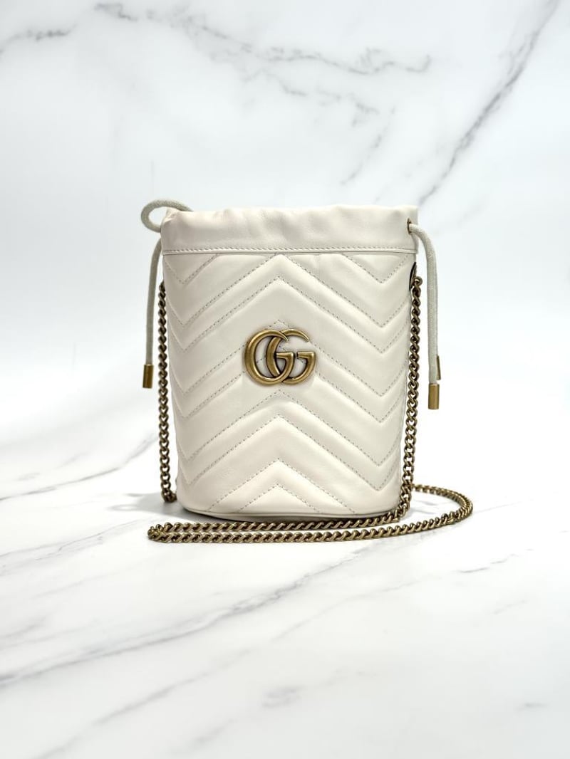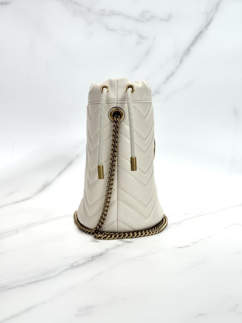 GUCCI WHITE MINI GG MARMONT BUCKET BAG Condition: Good - Refer Images 0488283+19