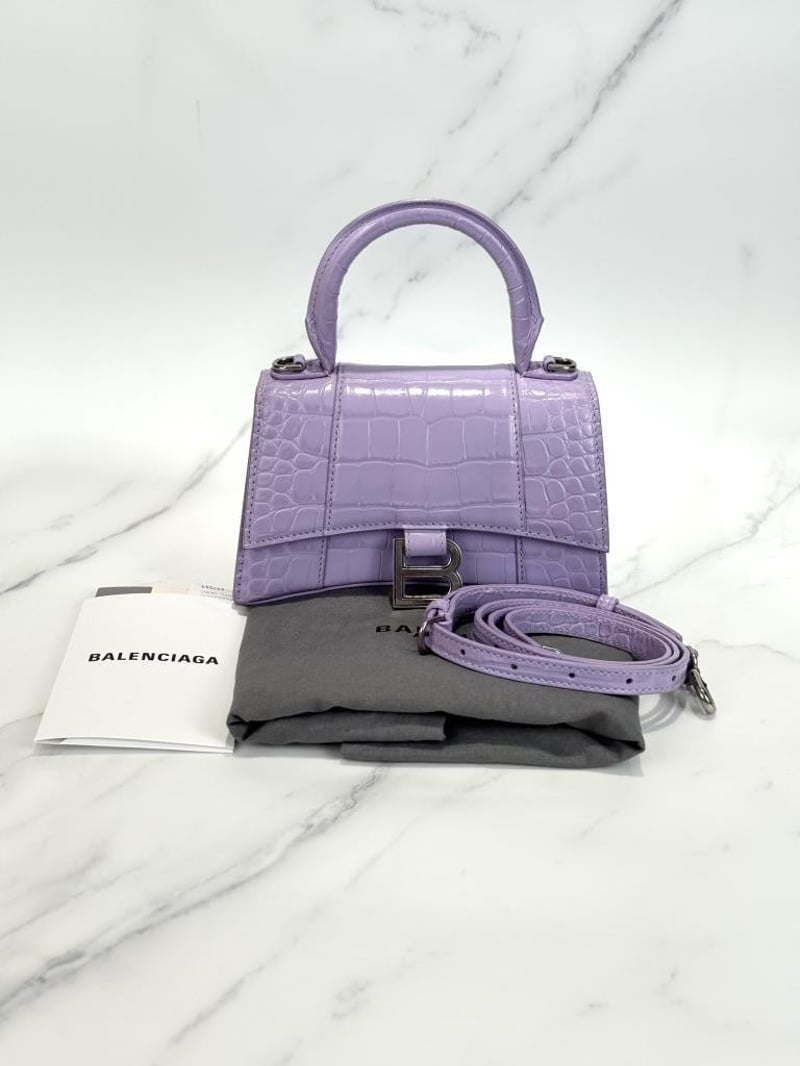 BALENCIAGA MINI HOURGLASS BAG PURPLE