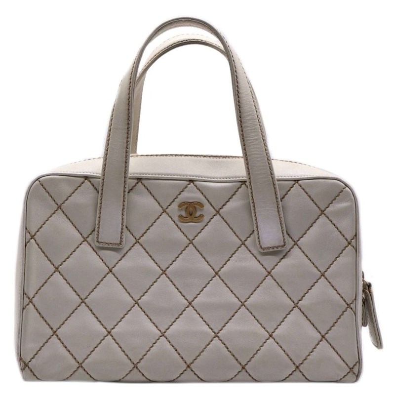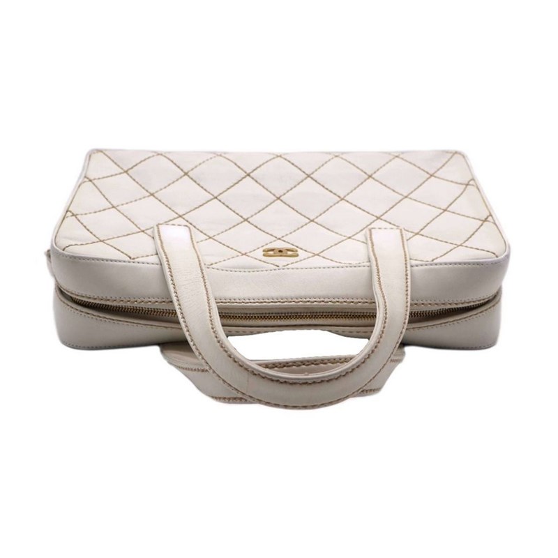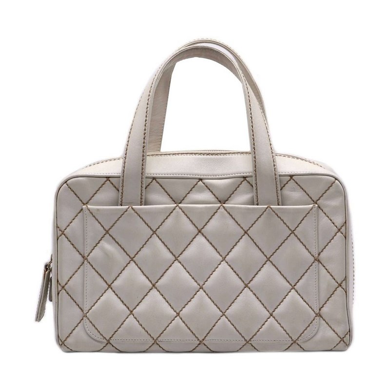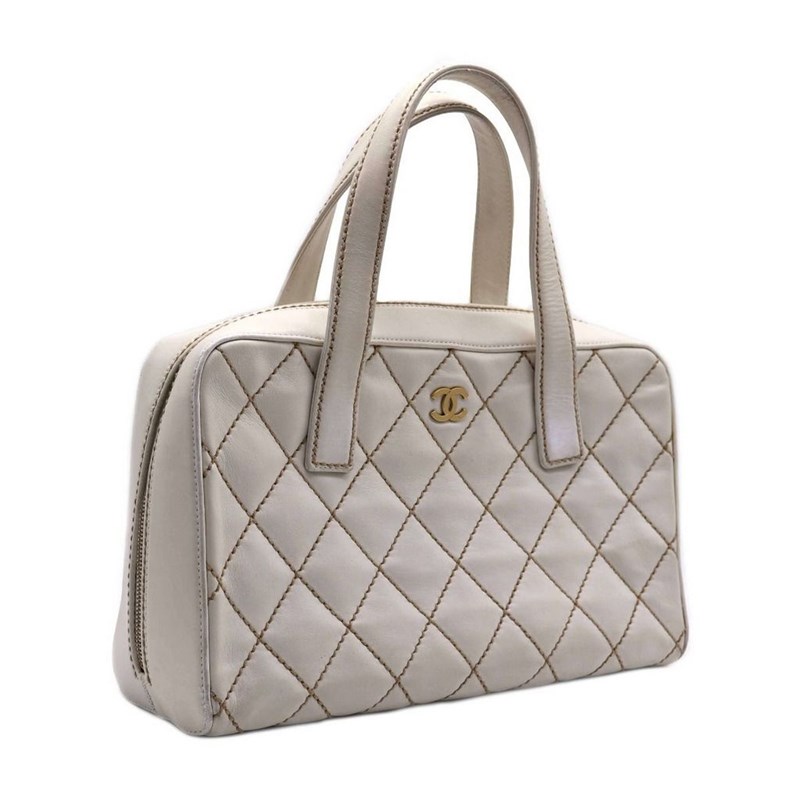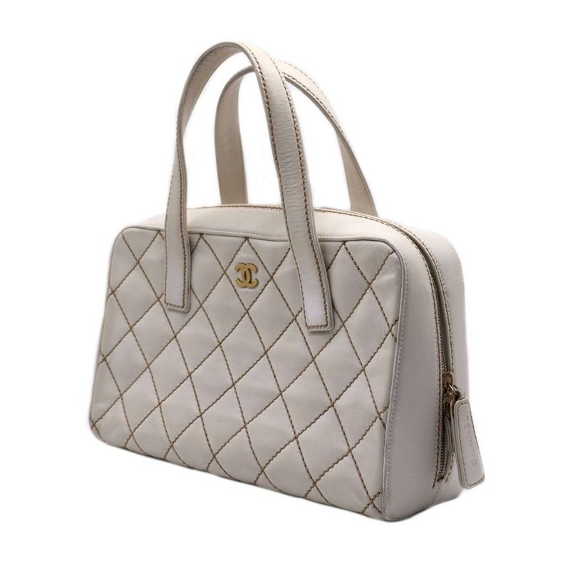 CHANEL WHITE WILD STITCH LEATHER BAGItem Size: Height: 34cm, Width: 20cm, Depth: 12cmExterior MaterialLeather With Gold-Tone Hardware, Dual Flat Top Handles, A Rear Pocket, Protective Metal Feet And Zip Around Closure.Interior MaterialTextile Lining With A Main Compartment, A Zipped Pocket And A Patch Pocket.Additional Condition Report- Moderate Sign Of Wear And Tears On Exterior- Moderate Scuffs And Creases On Exterior Corners- Sign Of Wear In Interior- Sign Of Wear And Scratches On HardwareComes With- Certificate Of AuthenticityHandle Drop: 14CmCROSS DOCK155511+19