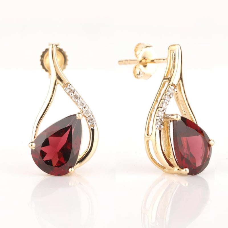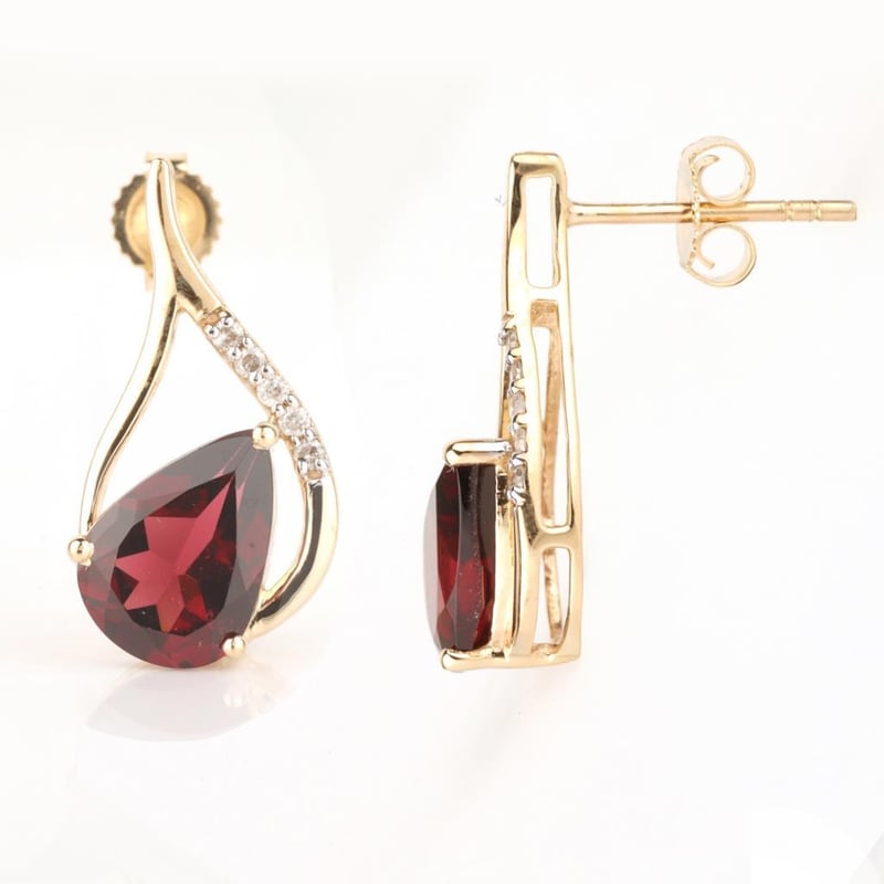 9CT YELLOW GOLD NATURAL GARNET & DIAMOND EARRINGS Weight Of The Item: 2.92 GFineness Of Metal(S): Yellow Gold 9KtThe Earrings Consists Of (2) Pear Brilliant Natural Garnet. Surrounding The Main Stones Are Round Brilliant Cut Natural Diamonds.Antique StyleIdentification: Natural GarnetColor: RedShape: Pear Brilliant CutNo. Of Stone: 2Dimension: 9 Mm X 7 Mm X 5.4 MmWeight: 4.1 CaratsCut: Very GoodIdentification: Natural DiamondShape: Round Brilliant CutWeight: 0.1 CtsCut: Excellent. Certificates Are Provided By Gemological Science International (Gsi), An Independent Third-Party Gemological Laboratory Based In The Usa And Recognised Among The Top 10 Gem Labs Globally Condition: Good - Refer Images 0488266+7